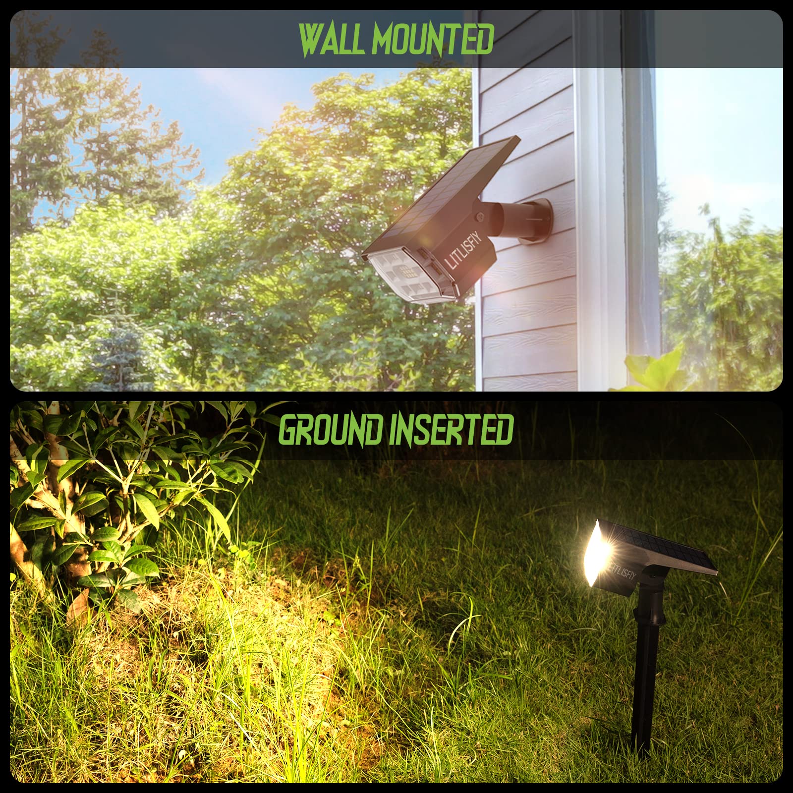 | special feature | 50 Brighter LEDs, warm white solar landscape spotlights, light-sensing Auto on/off, dusk to dawn, IP67 waterproof, Heat & Shock resistant, wall-mounted or ground insertedWaterproof |