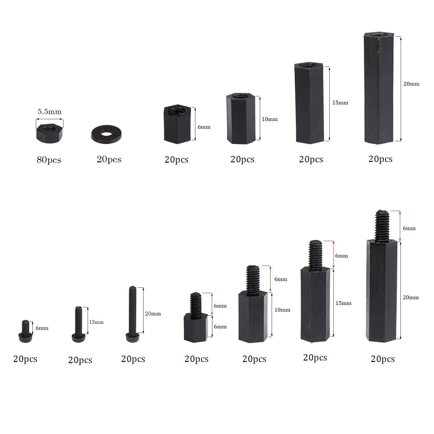 - 320PCS M3 Male Female Nylon Hex Spacer Standoff Screw Nut Threaded Pillar PCB Motherboard Assortment Kit (Black)