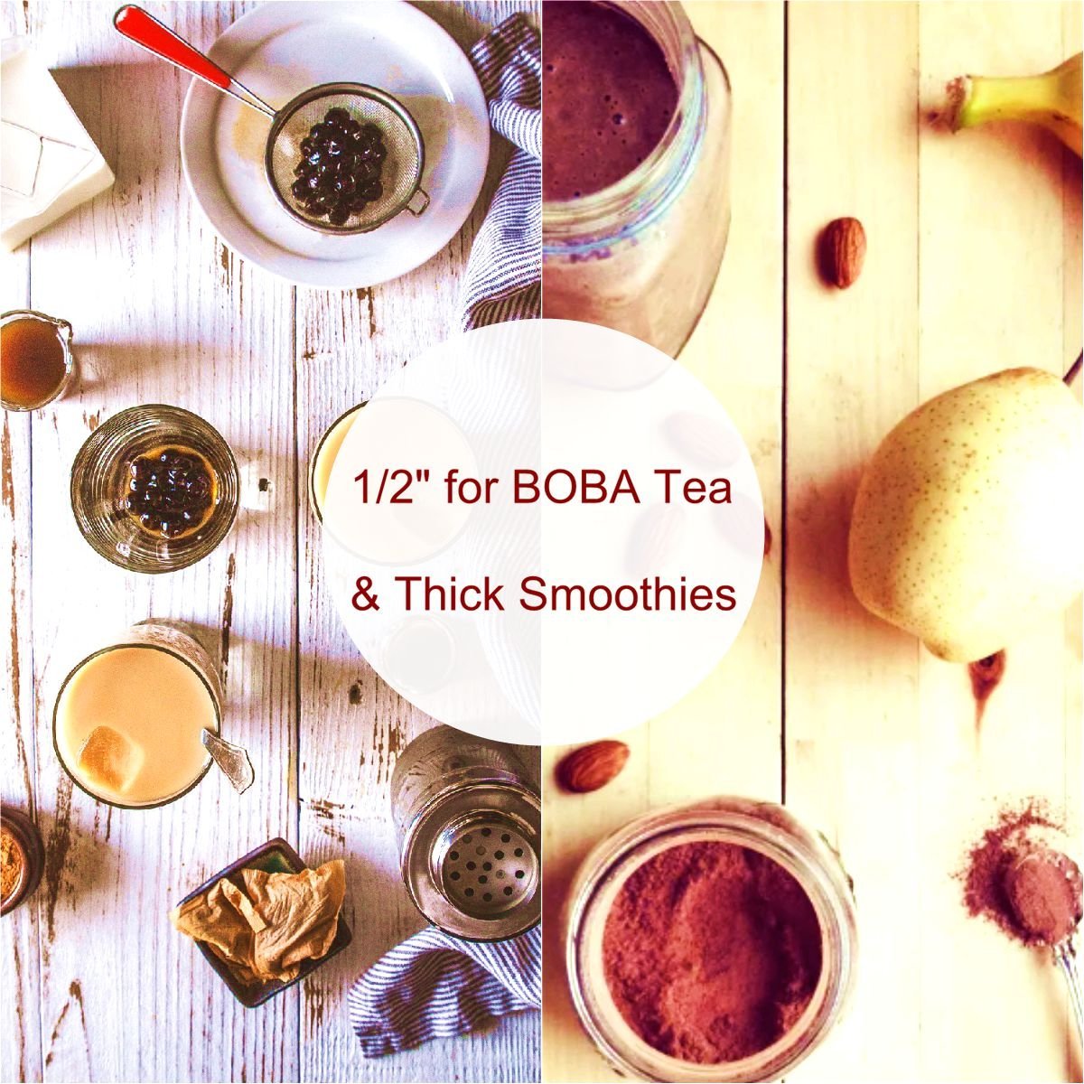 - Extra wide fat boba straws: the width of these stainless steel straws is 1/2, so don't let a thick smoothie intimidate you again. It's big enough for your boba tapioca pearl bubble tea, thick smoothies, milkshakes, jumbo drinks, morning shakes
