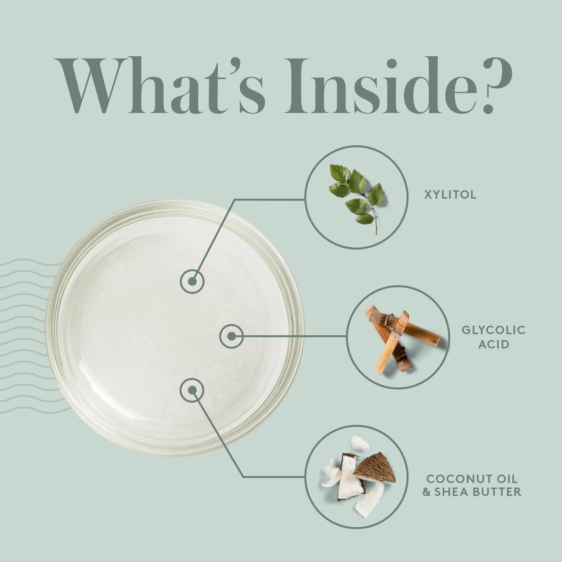 Its nutrient-packed formula contains: coconut oil, which adds natural, protective moisture to hair and scalp; glycolic acid, an exfoliating agent, which helps clean the scalp and unclog pores; and xylitol, which feeds the hair and scalp protein to smooth and strengthen skin, improving flaking, itching, and irritation.