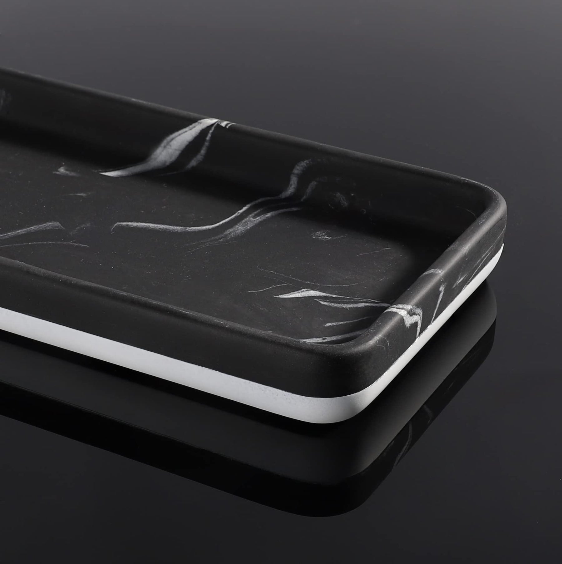 - Original Vanity Trays – Vanity Tray, Bathroom Tray Toilet Tank Storage Tray, Kitchen Trays, Decorative Jewelry Tray, Vanity Countertop Organizer for Cosmetics Perfume Candles Soap, Rectangle Black 9.5 by LKKL