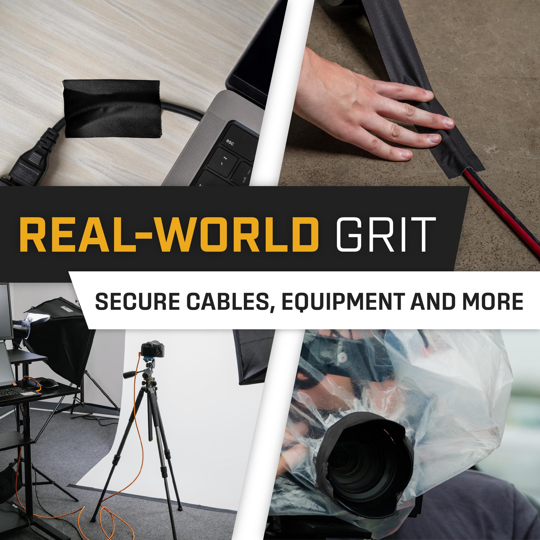 - SET IT AND FORGET IT – Secure cables, props, and equipment with Lockport black gaffers tape. Designed for strong adhesion, it stays in place through concerts, shows, conferences, video productions, and photography sessions. Ideal for clean, dry, and non-porous surfaces.