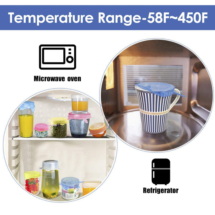 - Easy to stretch & Widely used: Our super thick silicone covers are durable and will not tear or warp. Easy to use, they can be used over and over again and are dishwasher and freezer safe. Silicone lids comes to be round. But it is stretchable enough to fit different small shaped mugs, pots, cups & bowls.