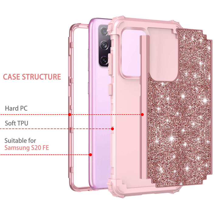 - Original Basic Cases – Compatible with Galaxy S20 FE 5G Case Glitter Sparkly Bling Shockproof Heavy Duty Hybrid Sturdy High Impact Protective Cover Case for Samsung Galaxy S20 FE 5G 6.5 inch 2020, Shiny Rose Gold by LONTECT