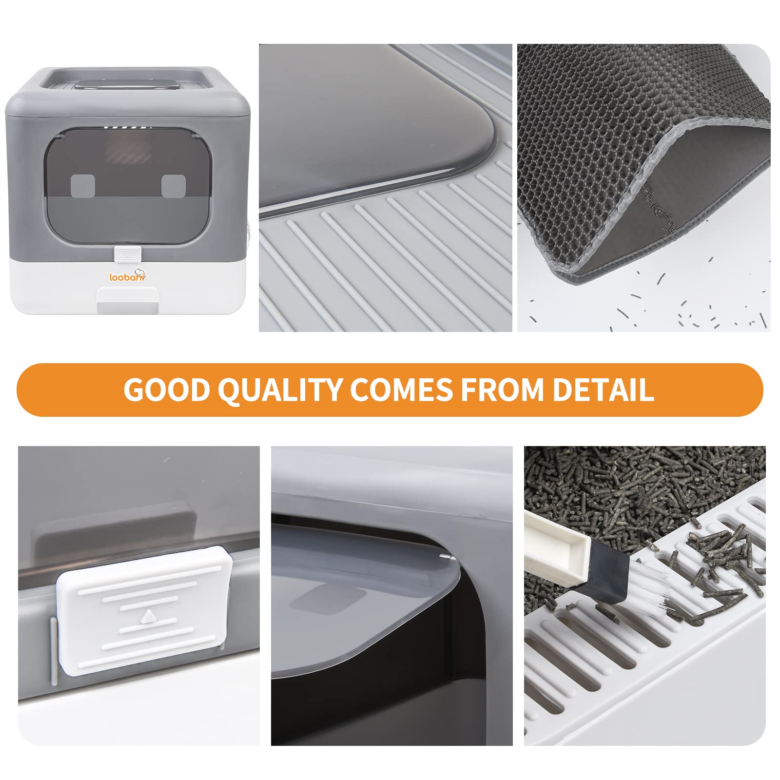 - Original Standard Litter Boxes – Foldable Cat Litter Box with Lid,Enclosed and Covered Litter Box to Prevent Smell, Anti-Splashing Kitty Potty with Scoop and Mat for Easy Clean, Large Top Entry Cat Toilet with Drawer (Grey) by LOOBANI