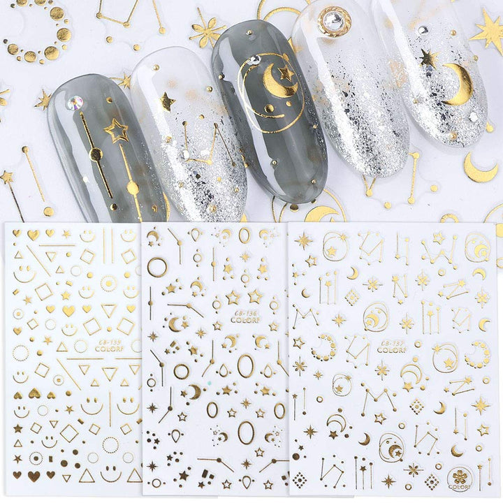 - Original Stickers & Decals – 8Sheets Self-ahesive 3D Design Nail Art Stickers Decals Gold Silver Metallic Studs Moon Stars Geometry Pattern Manicure DIY Decoration Tools by Lookathot