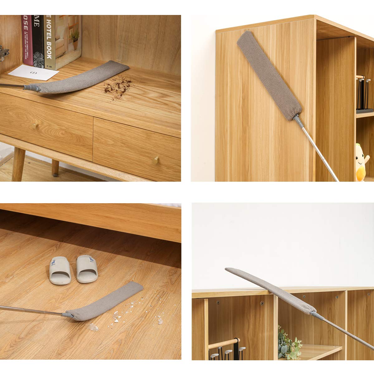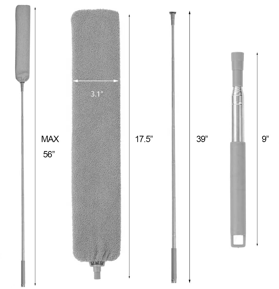 - [Long Duster with Telescoping Pole]: The duster handle is made of heavy duty stainless steel, can be adjusted freely from 31 inches to 61 inches according to your actual needs, help you clean under appliance easily. The microfiber cloth cover let you sweep ash and dust easier!