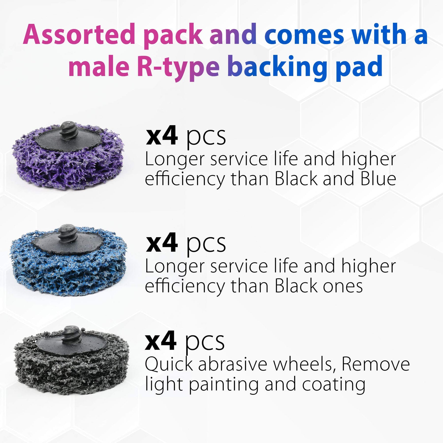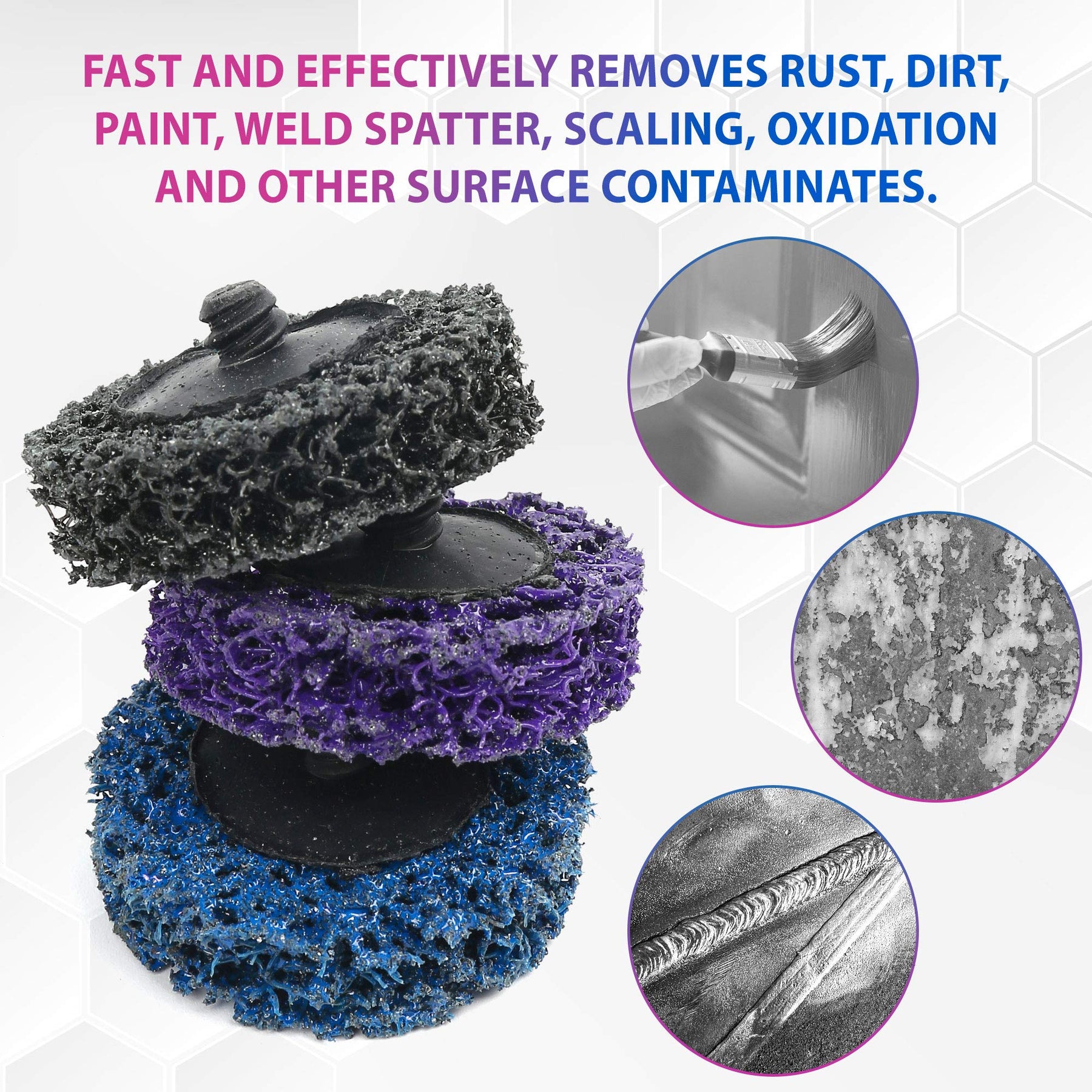 - Original Quick Change Discs – Stripping Disc, 13PCS 2” Easy Strip and Clean Quick Change Discs and Disc Pad Holder, Paint and Rust Remover Stripper, Silicon Carbide Abrasive Wheel, Blue Black Purple Assortment by LotFancy