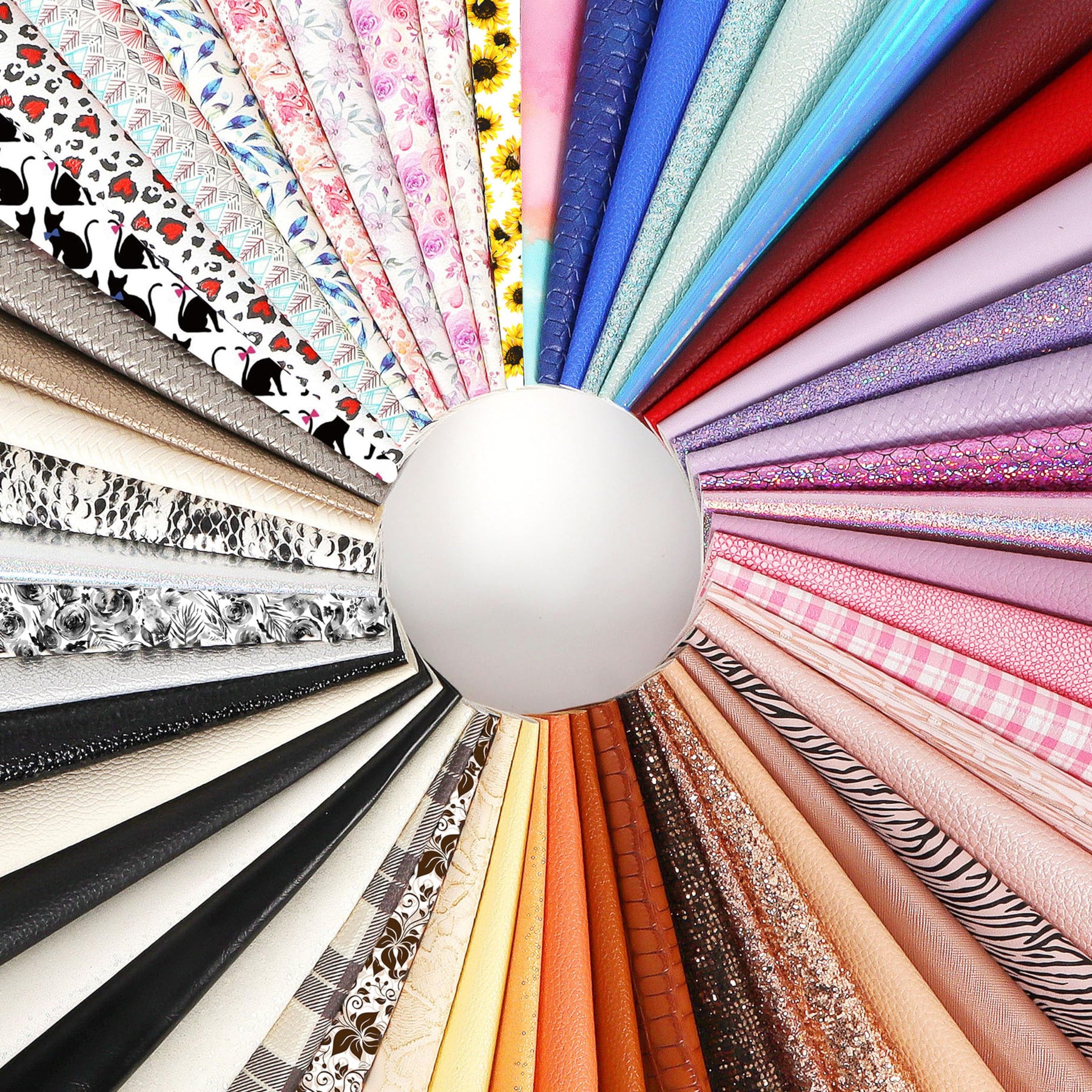 - Multiple StylesFaux leather sheets may contain glitter, grain texture embossed, woven textured ,colored cork, pattern printed faux leather, Unique texture and patterns make your crafts alive. Glitter faux leather can sparkle under the light, which makes your handicrafts more delicate and special.