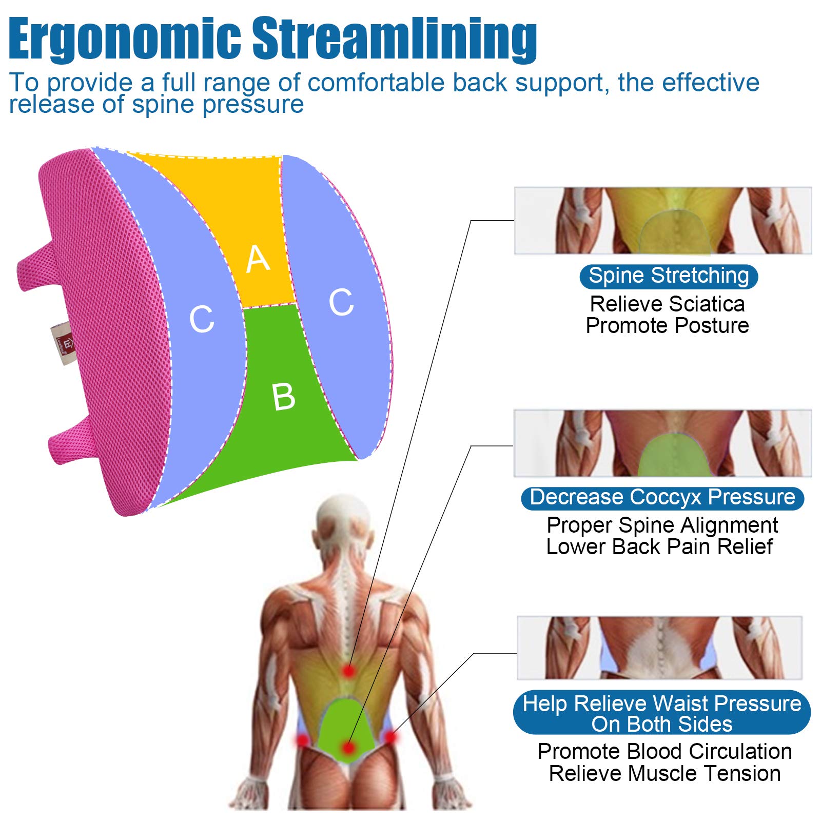 - Original Lumbar Pillows – Love Home Memory Foam 3d Ventilative Mesh Lumbar Support Cushion Back Cushion - Alleviates Lower Back Pain - (Rose Red) by TheGlobalGenie
