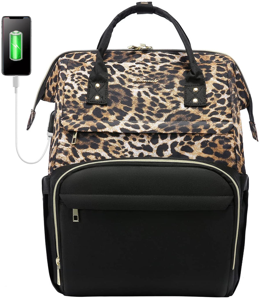 - Original Backpacks – College Laptop Backpack, 15.6 Inch Travel Backpack for College, Waterproof Work Backpack Woman for Teacher Nurse Anti-theft Travel Back Pack, Gifts for Women, Leopard by LOVEVOOK