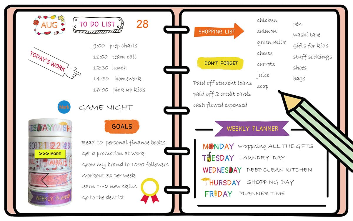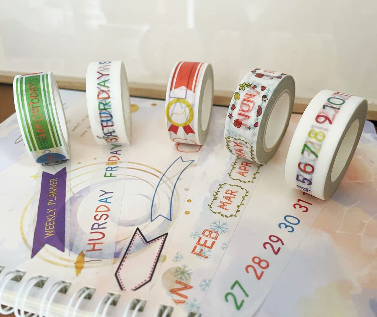 - Original Arts & Crafts Tape – Bujo Week Month Date Day Banner Number Planner Box washi Tape Set of 5 Rolls - Decorative DIY Japanese Masking Scrapbook Notebook Planner, Length : 10m (10.93 yards by lovielf