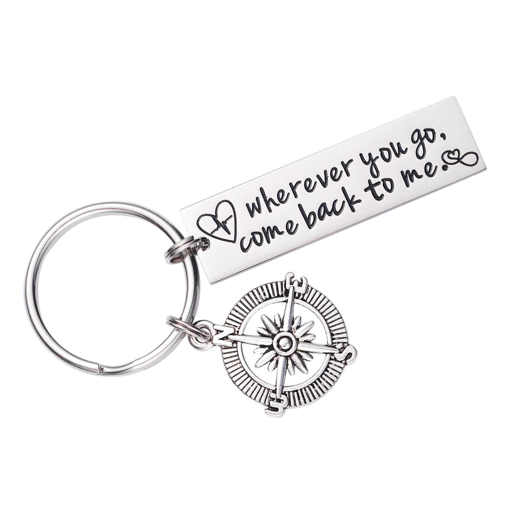 - Original Keyrings, Keychains & Charms – Wherever You Go Come Back to Me Keychain Long Distance Relationship Graduation College Moving Deploying Stainless Steel Gift for Boyfriend Men Love by LParkin