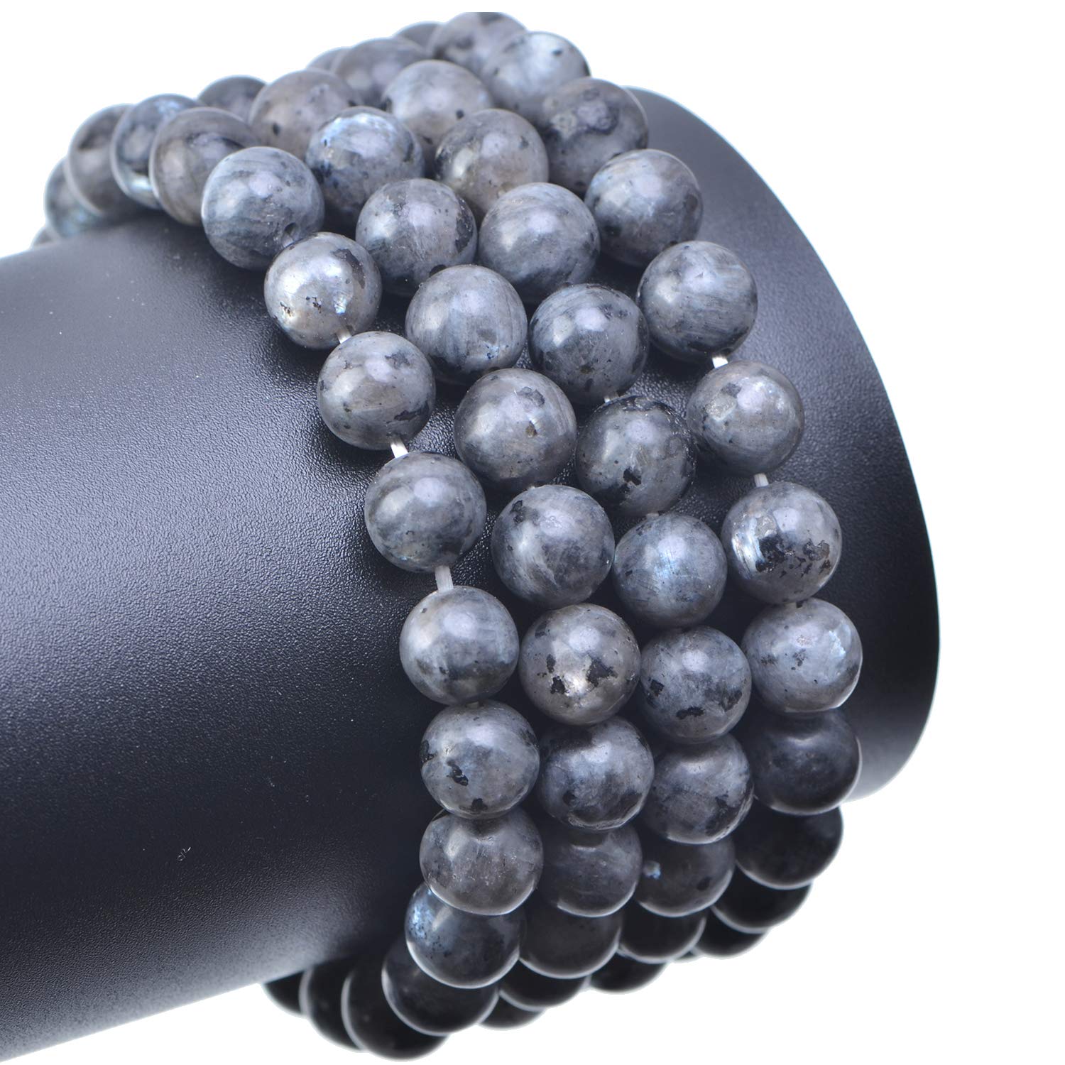 - Material: Genuine Real Black Larvikite Stone Beads with White Stretch Cord. Enough to Make 4 Bracelets