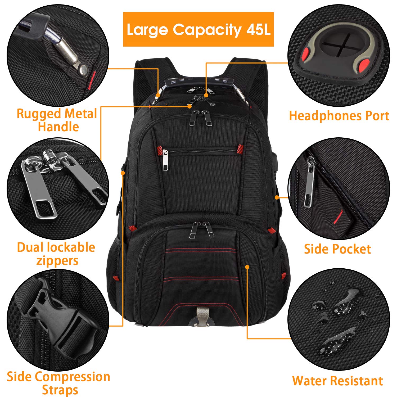 - Original Backpacks – Travel Laptop Backpack, Extra Large Backpack for Men Women with USB Charging Port, TSA Friendly Heavy Duty Big Business Computer Bag Tech Backpacks Bag Fit 17 Inch Laptops, RFID Backbag by LTINVECK