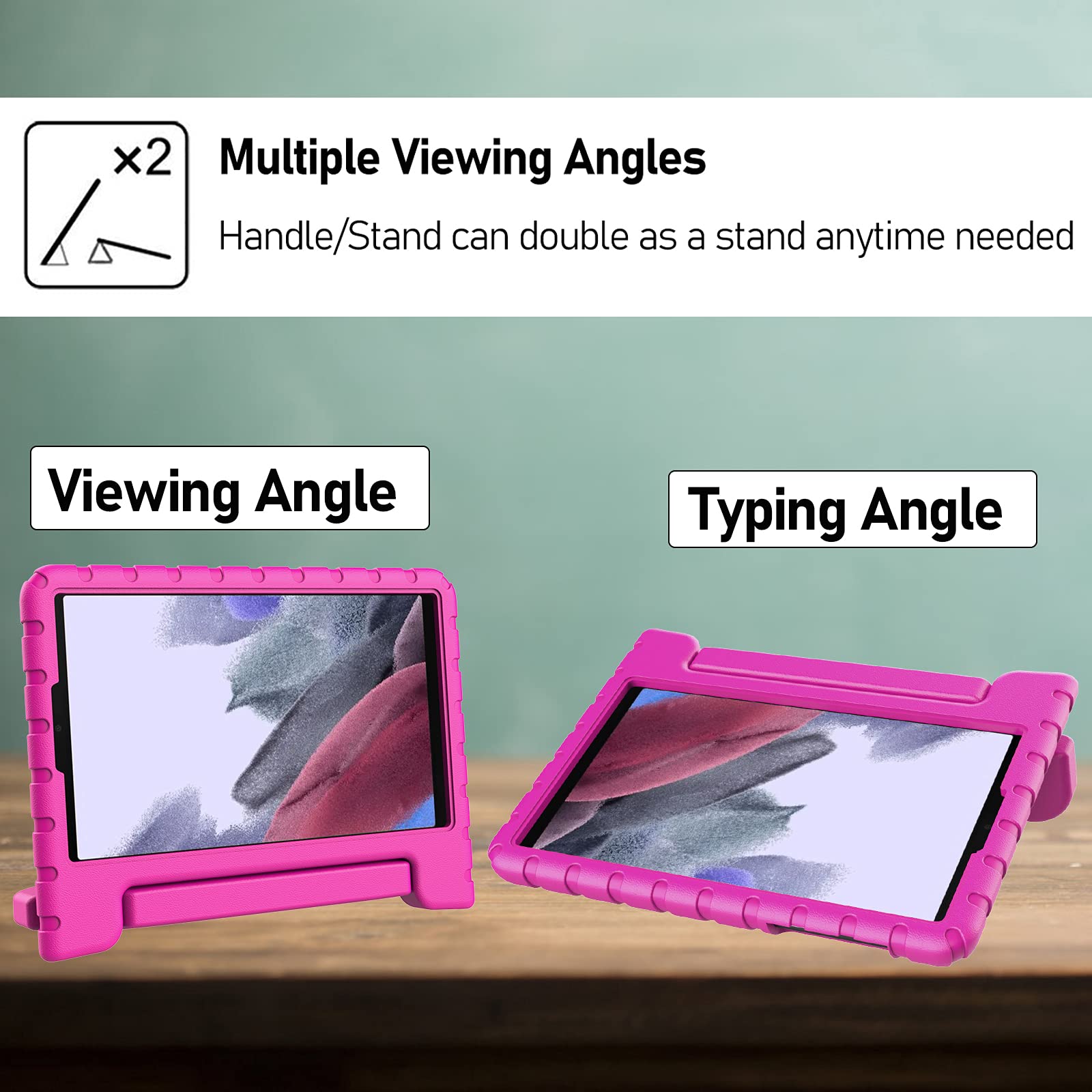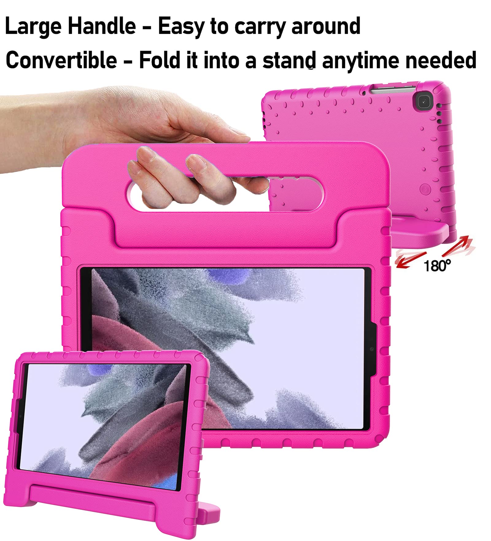 - Samsung Galaxy Tab A7 Lite case for kids features 180 degree convertible grip handle, easy for little kids to carry around, the handle can double as a stand for hands free viewing anytime needed