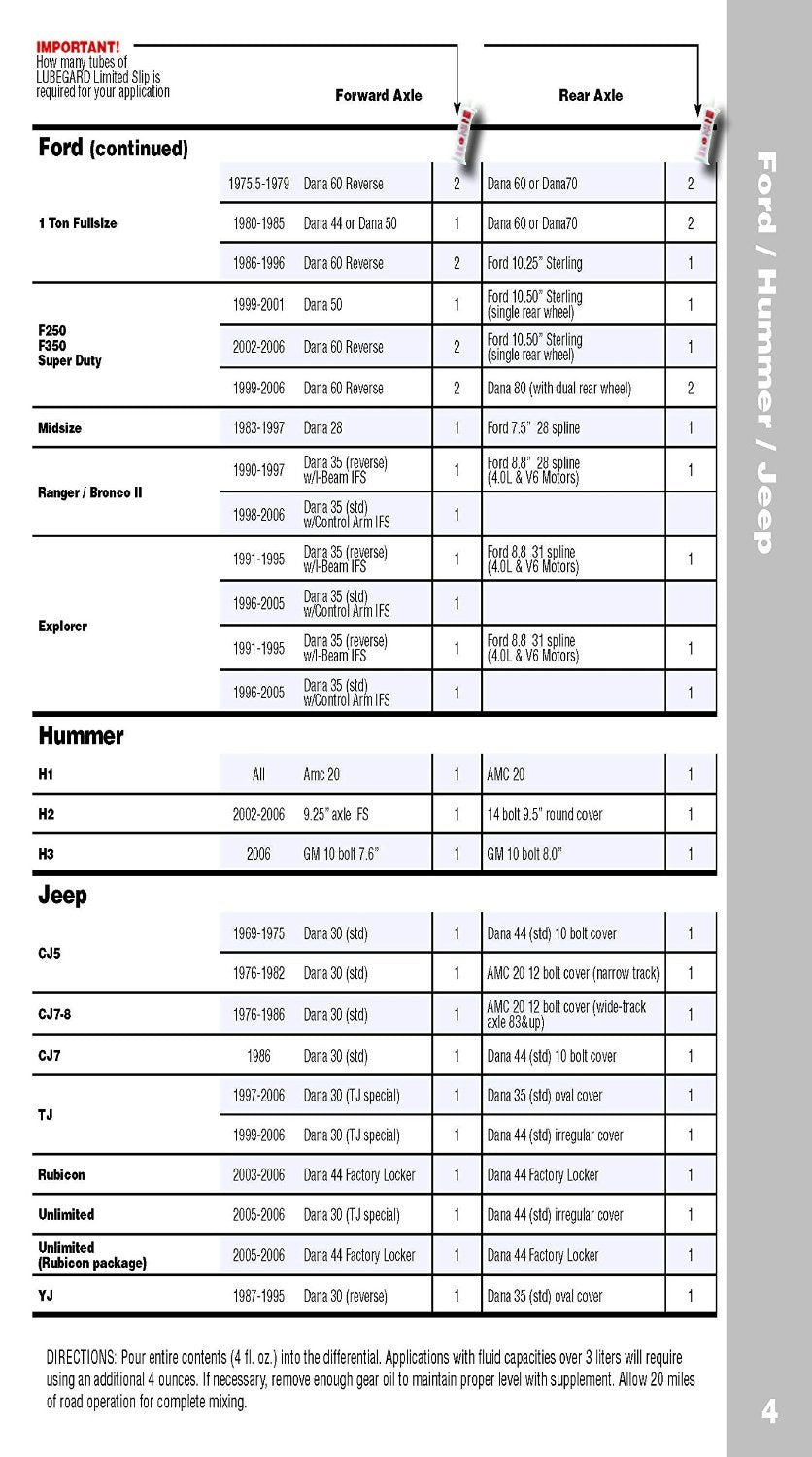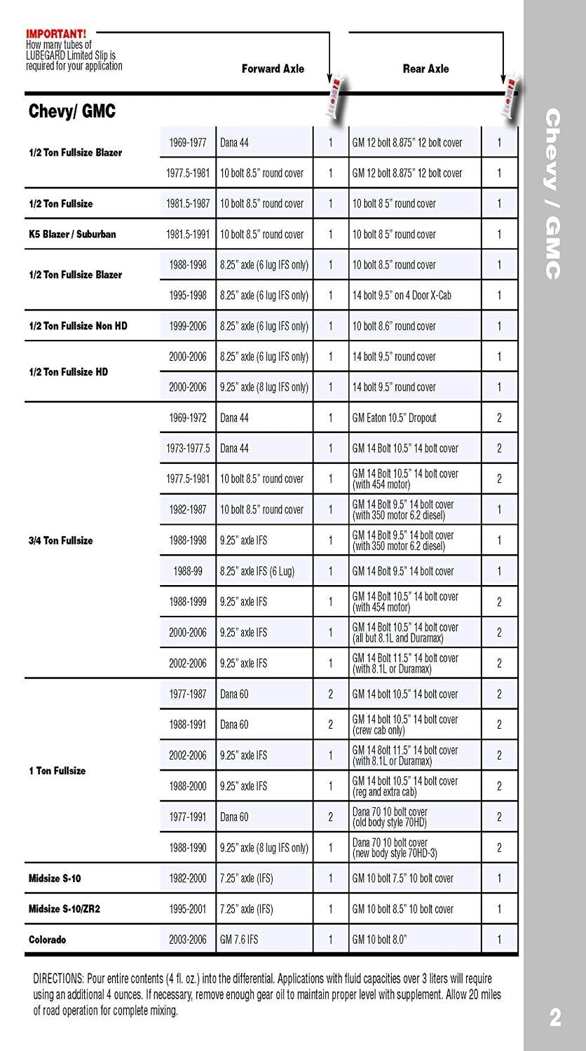 - Universally works in all makes and models with limited slip differentials including Ford, Chrysler and GM; for use in all final drives and limited slip posi-traction units