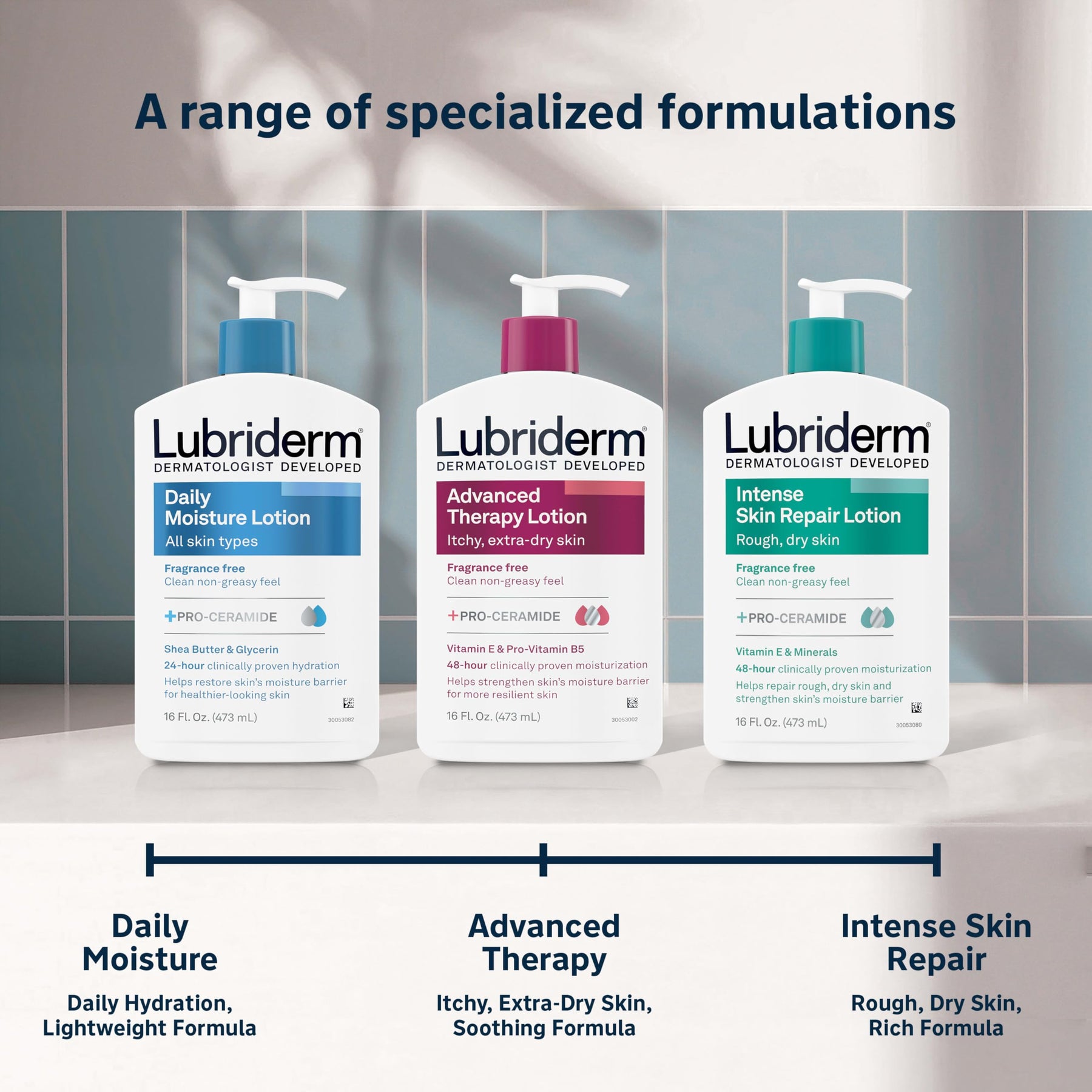 - Original Lotions – Intense Dry Skin Repair Lotion + Pro-Ceramide with Vitamin E & Minerals Helps to Repair Rough, Dry Skin, Fast Absorbing Lotion is Fragrance-Free and Non-Greasy, 16 fl. oz by Lubriderm