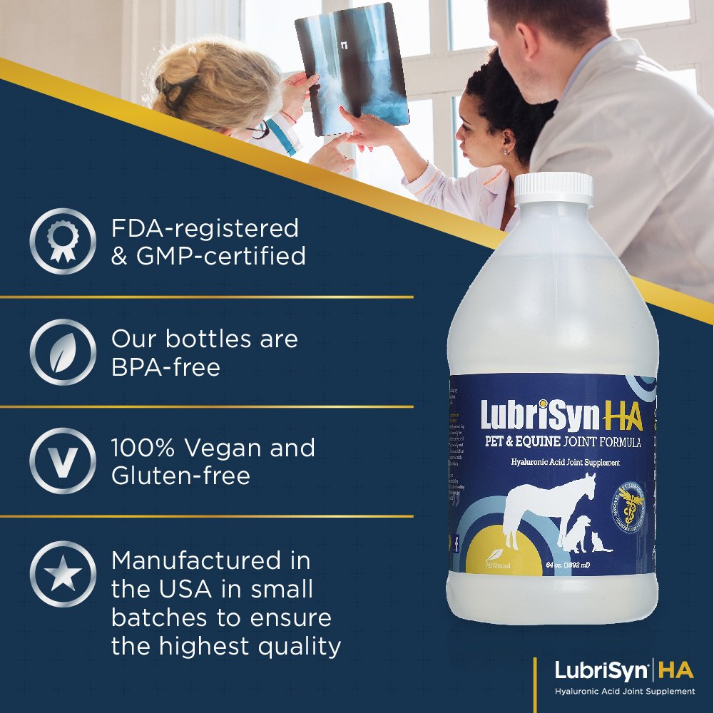 - Original Hip & Joint Care – LubriSynHA Hyaluronic Acid Pet & Equine Joint Formula 64oz - All-Natural, High-Molecular Weight Liquid Hyaluronan - Joint Support for Horses, Dogs, Cats - Promotes Healthy Joint Function, Made in USA by Lubrisyn