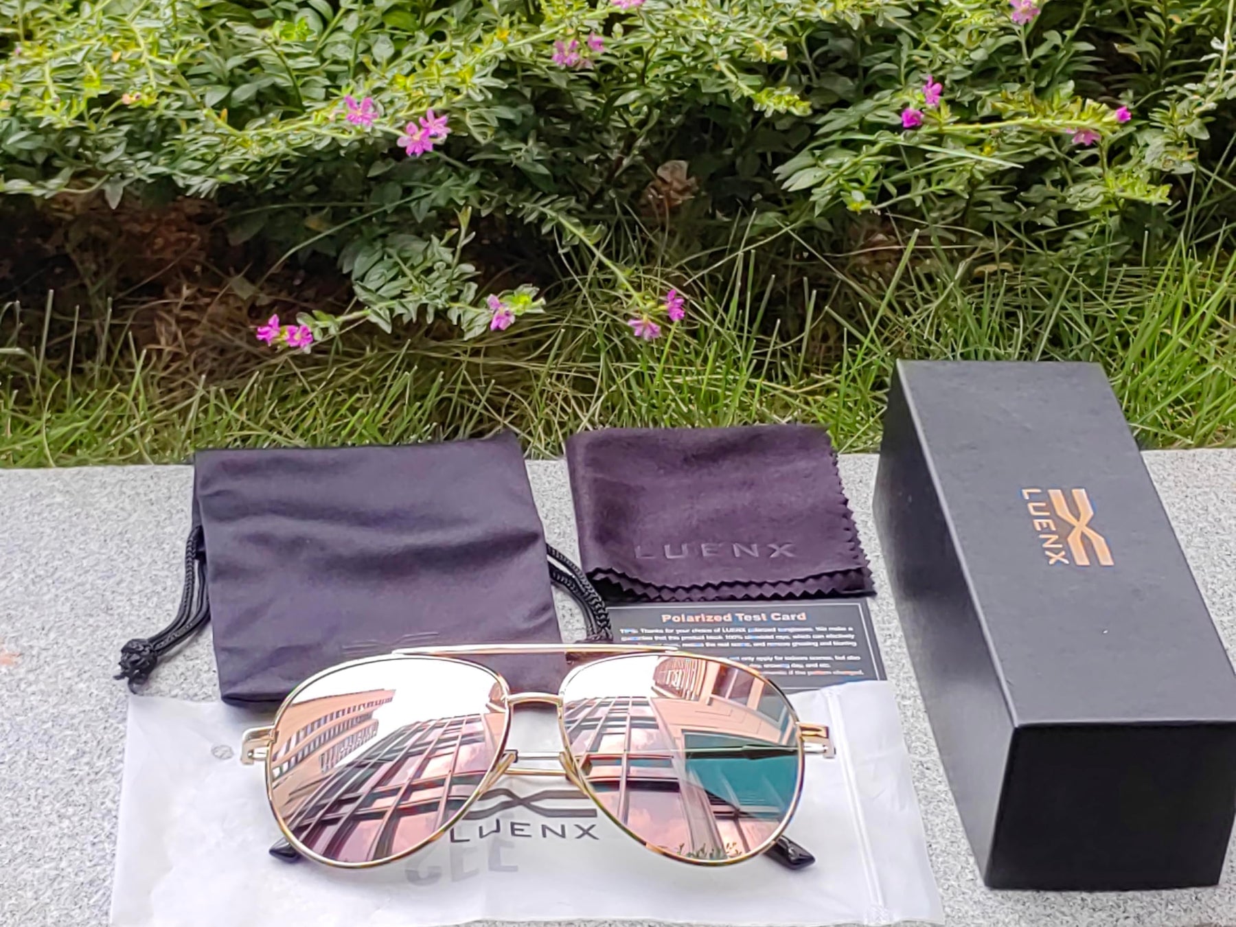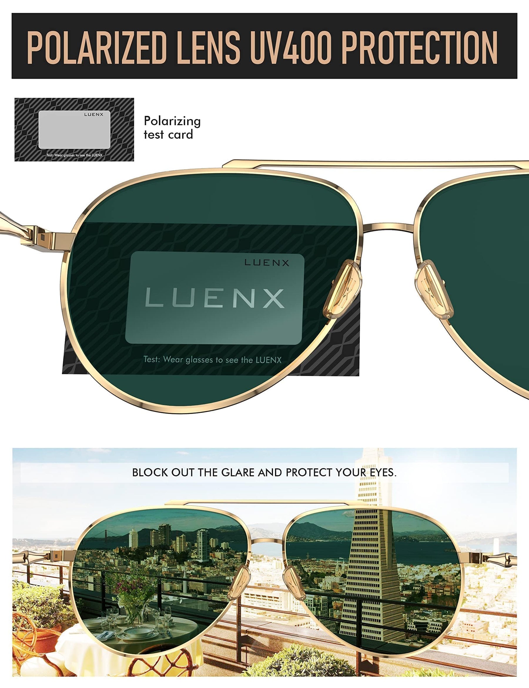 - Original Sunglasses – Men Women Aviator Sunglasses Polarized - UV 400 Protection Black Non Mirror Lens Metal Frame with Accessories 60mm by LUENX