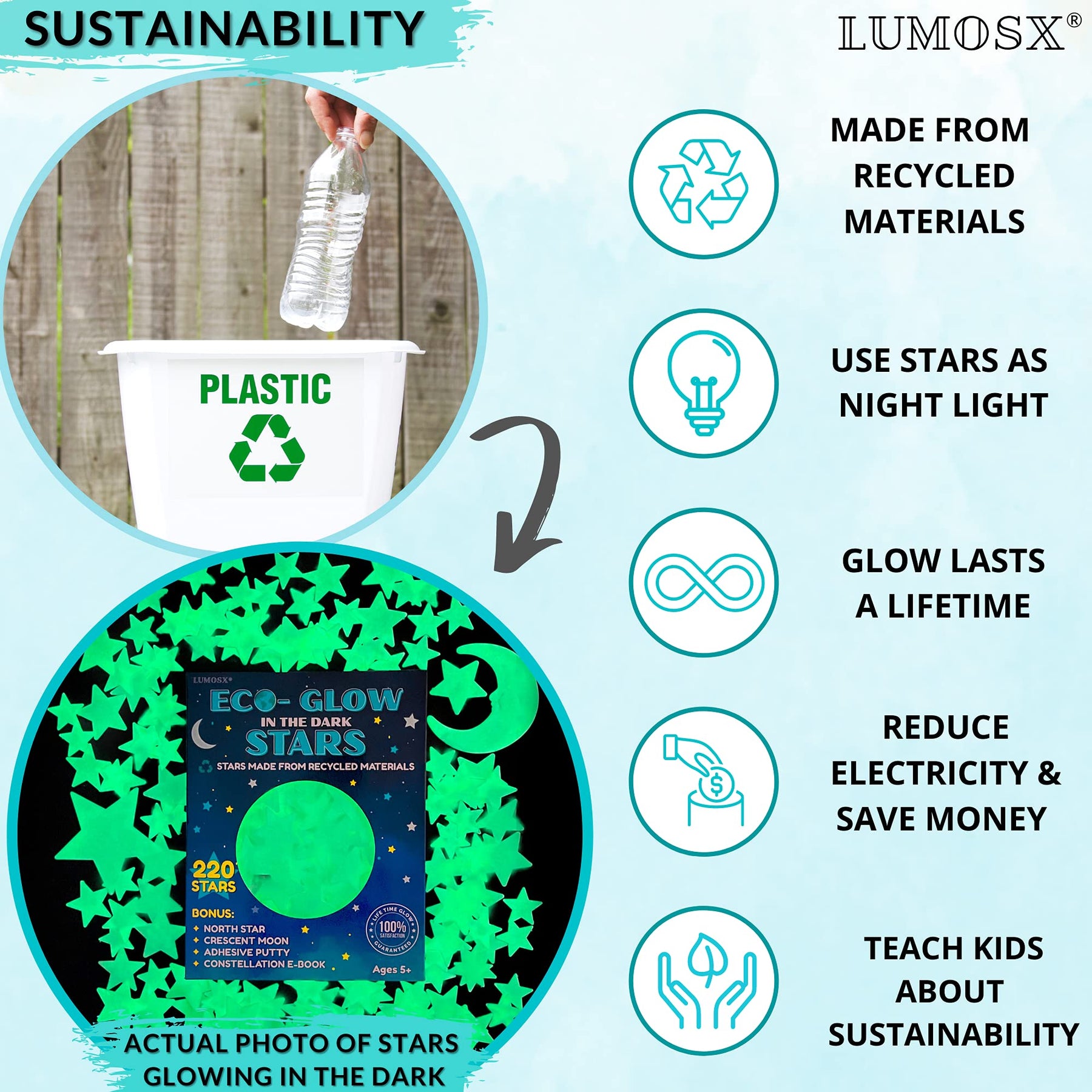 - [ Sustainability ] These stars are made from recycled materials so we can be gentle to our planet. You can teach your kids about sustainability and use these glowing stars as an example!