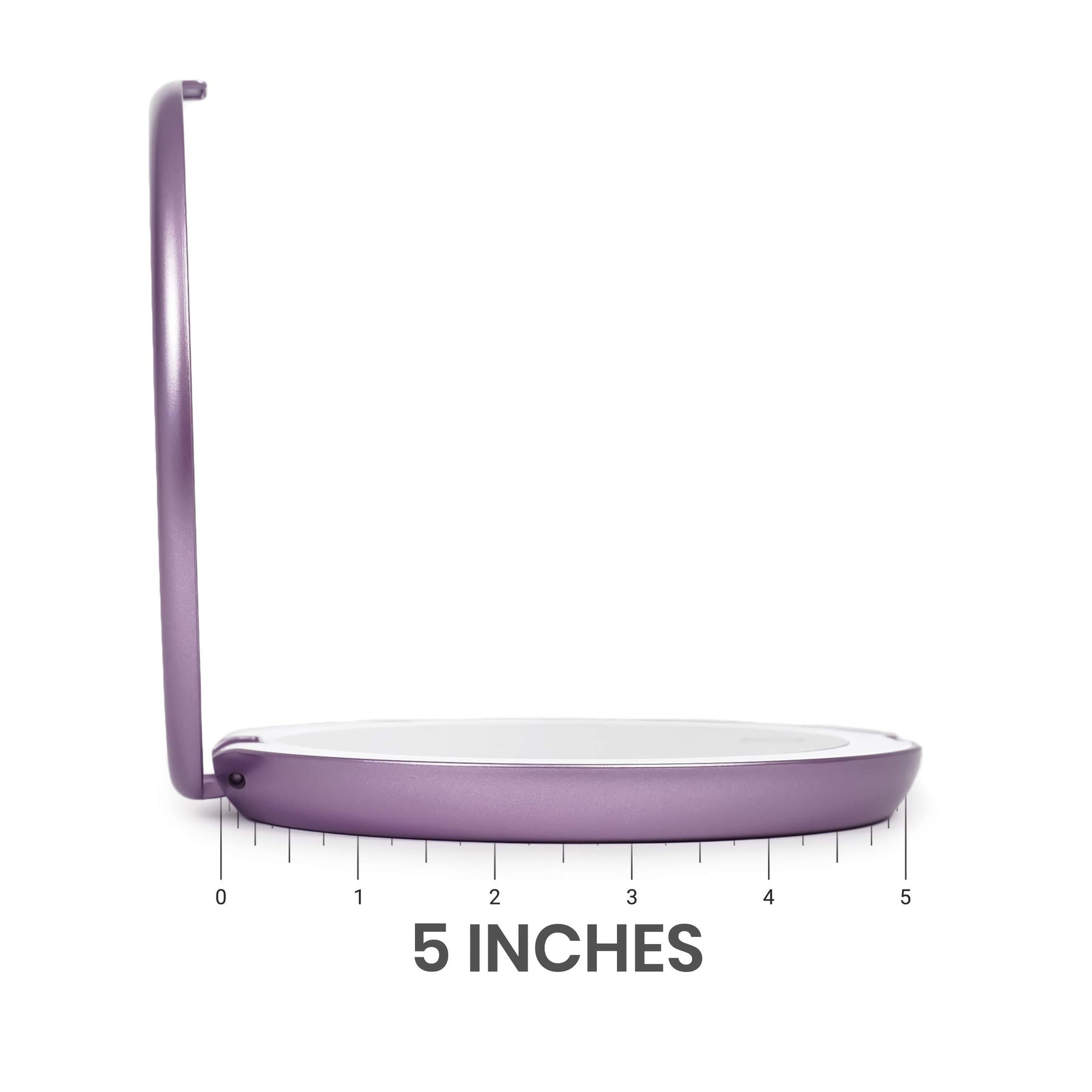 - LARGE 5” CIRCULAR SHAPE - Due to it’s round 5 inch folding mirror shape, rechargeable and portable design, it’s easy for quickly throwing into your shoulder bag, gym bag or suitcase as part of your essential travel accessories.