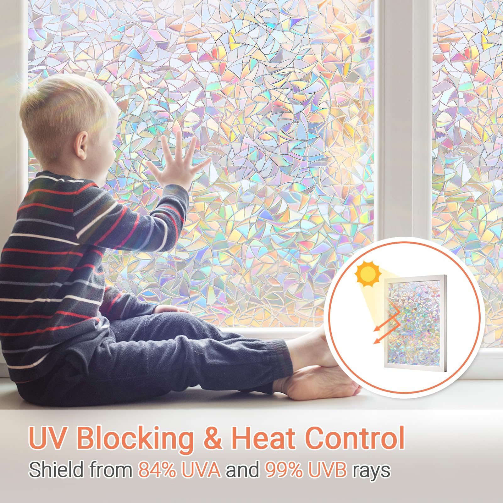 - Original Window Films – Window Privacy Film, Rainbow Window Film, 3D Decorative Stained Glass Window Cling, Static Cling Non-Adhesive Removable Window Covering, Sun UV Blocking Window Decal for Home 17.5 x 118.1 inches by LUTE