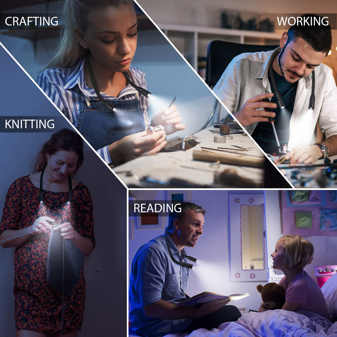 - [Easy to Use]: Hang it around your neck, enjoy your reading in bunk bed or in the car or on a night flight, meanwhile it's sweat proof, perfect for reading, knitting, outdoor walking, jogging sports or BBQ