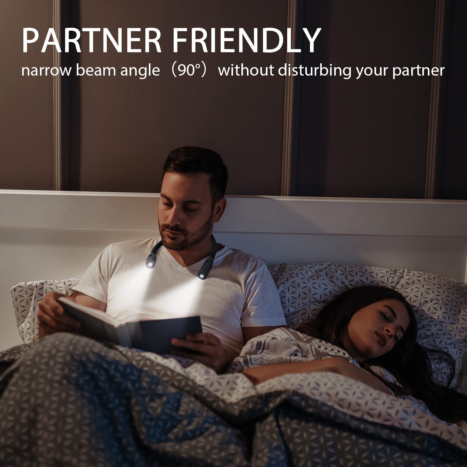- [Portable & Asleep Partner ] With only 3.8 ounce weight, the bendable neck light doesn't require much space and can fit easily into your carry-on suitcase, very convenient to take it with you on travel. Shining the smallest area with enough bright light for reading without disturbing your sound asleep partner