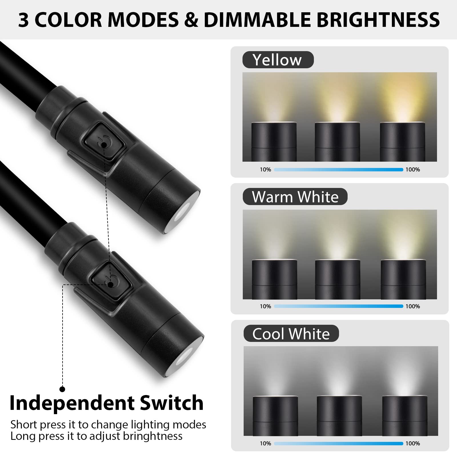 - [3 Modes Light] Spot light on, flood light on, spot/flood light both on. Easy to create the perfect brightness to meet your reading environment such as in bed or car.
