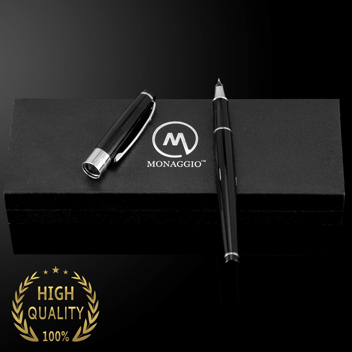 - Original Fountain Pens – Luxury Black Fountain Pen with Beautiful Case Set, Fine Silver Nib and Refillable Converter. Perfect Calligraphy Pens to Make Your Point. Works Smoothly with International Disposable Ink Cartridges by MONAGGIO