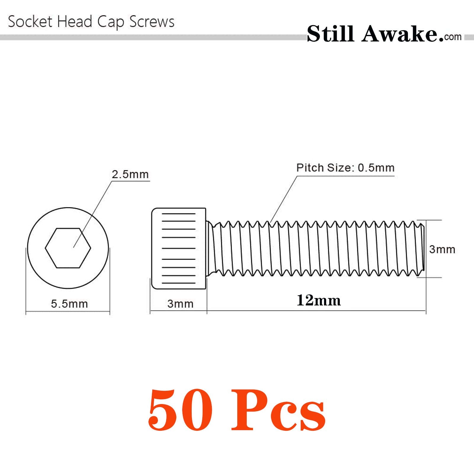 - Package Included: 50 x Socket Head Cap Bolts/Screws (M3 x 12).