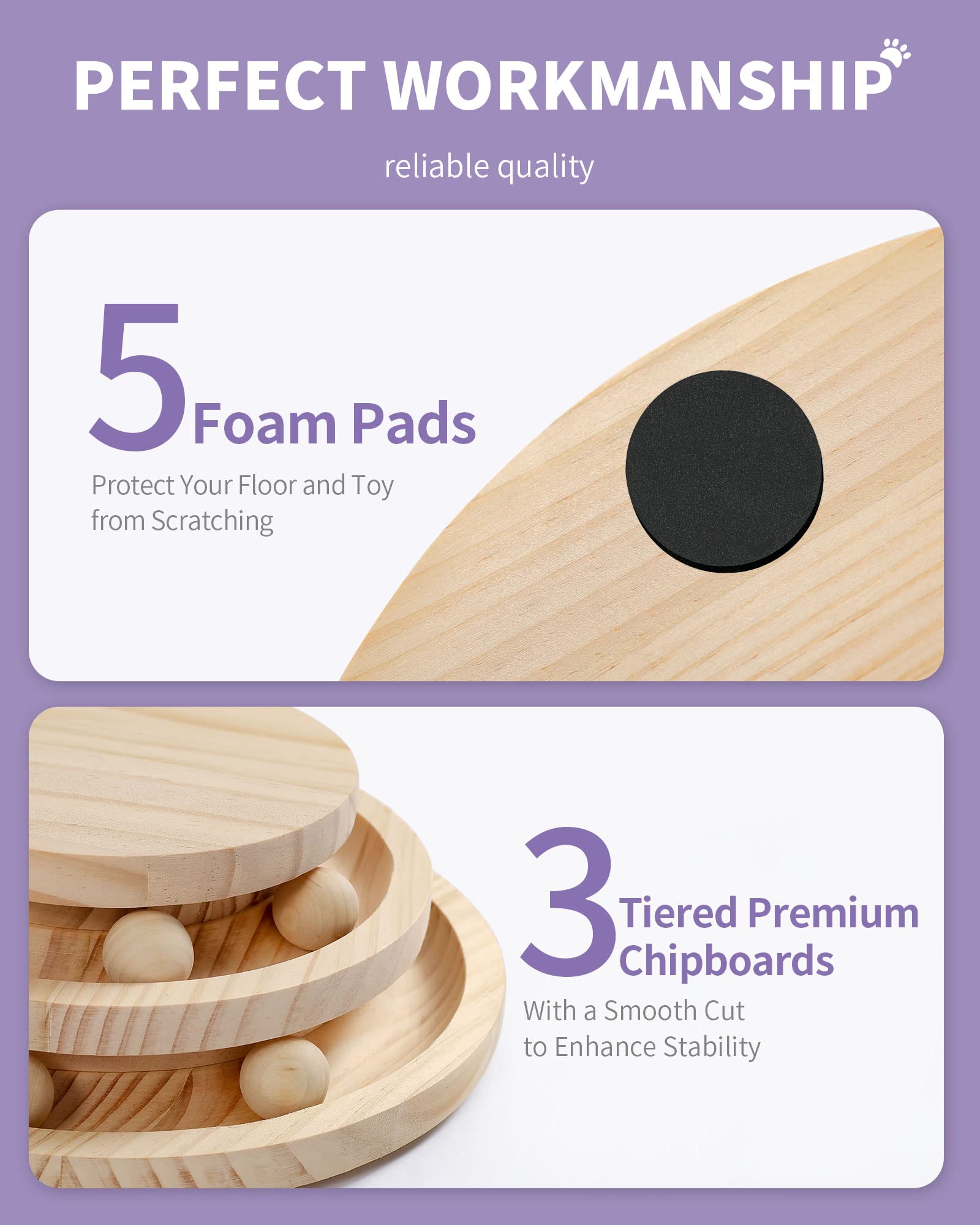 - 3-Tier Cat Toy Board:The cat scratchers pole is designed with 3 levels of tracks and 4 moving balls to attract kitty’s attention! Your cat will adore batting, swatting, and pouncing the playing balls as they entertain their natural instincts to hunt.