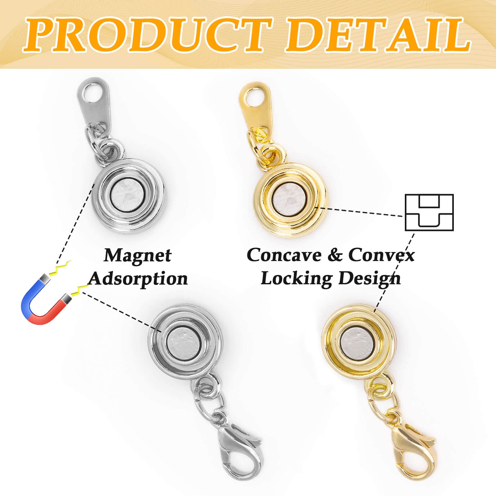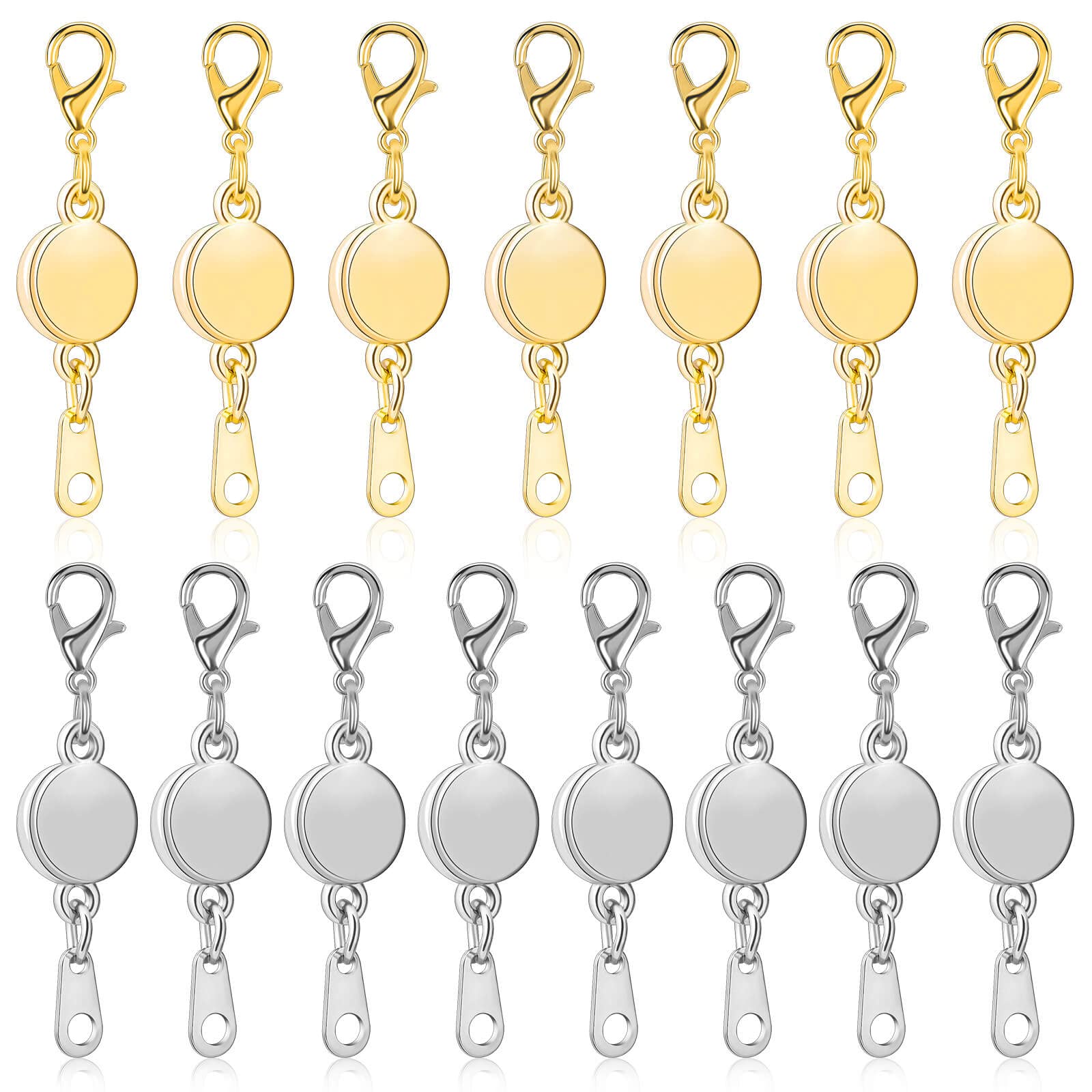 - MAGNETIC JEWELRY CLASPS: Package comes with totally 15 sets of magnetic necklace clasps and closures in silver and gold color. These magnetic necklace clasps help putting on necklaces and bracelets so much easier and quicker