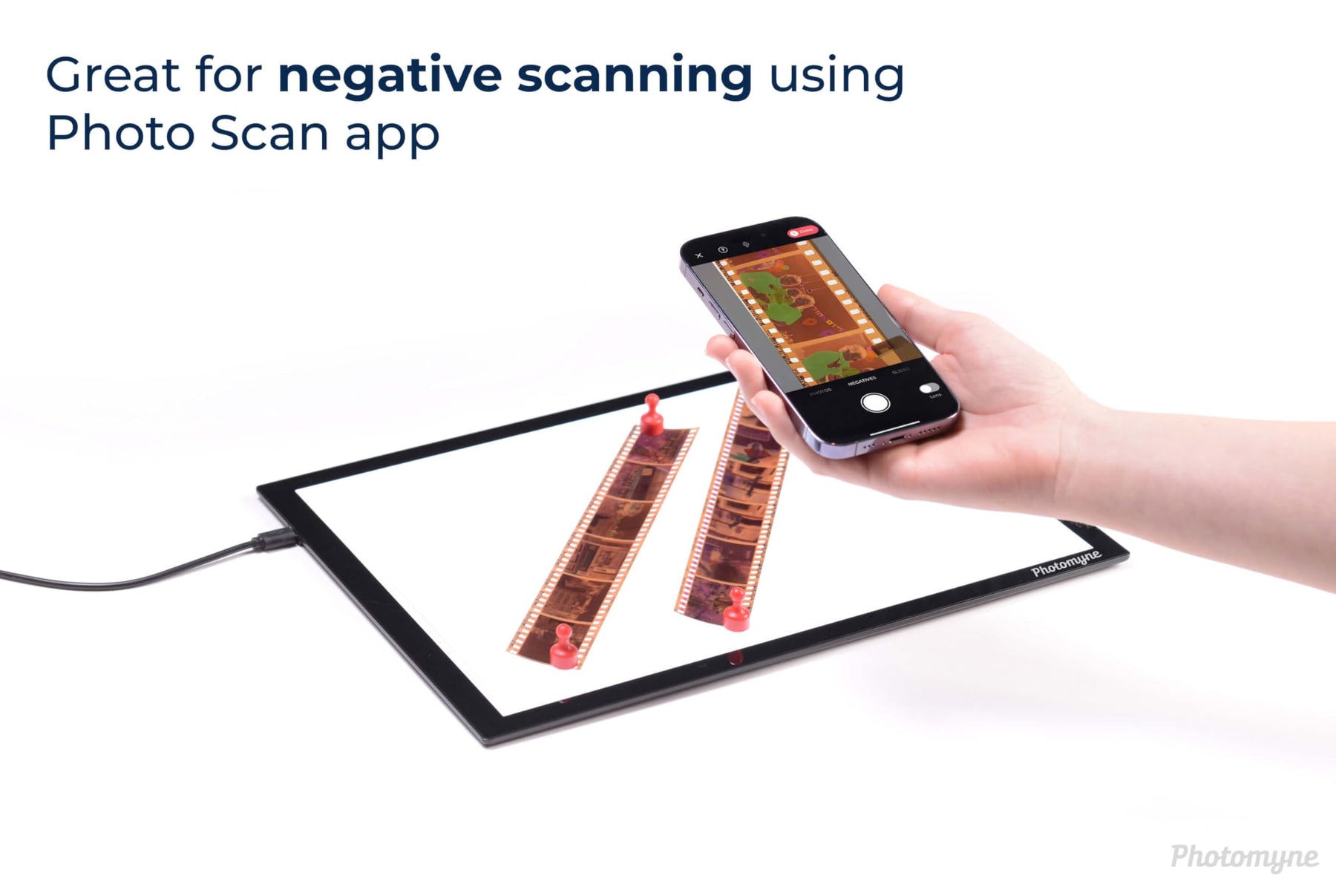 - THE PERFECT LIGHT BOX FOR SLIDES AND NEGATIVES - Convert slides and negatives to digital images. Best used together with the SlideScan (for scanning slides) or the FilmBox app (for scanning film negatives) by Photomyne.