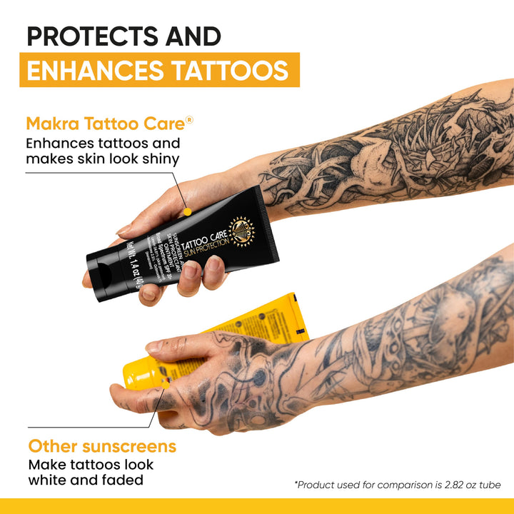 - Original Body Sunscreens – Makra Tattoo Care Sunscreen – SPF 30+ All Natural Tattoo Sun Protection - UVA/UVB Protection - Deeply Moisturizes and Protects Ink Against Fading - Enhances Colors, Water Resistant - 1.35 Oz/40 g by TATTOO CARE