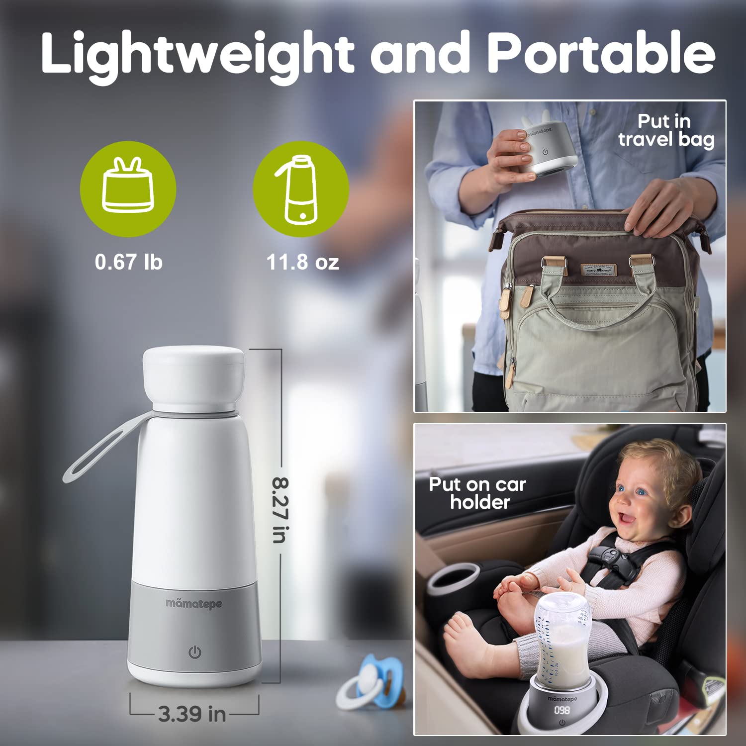 - Original Bottle Warmers – Mamatepe 2-in-1 Portable Bottle Warmer for Travel, Baby Milk Warmer on The go, Baby Brew Bottle Warmer for Breastmilk, Formula, Water, USB Rechargeable 4 Temperature Setting (Not Include Adapters) by mamatepe