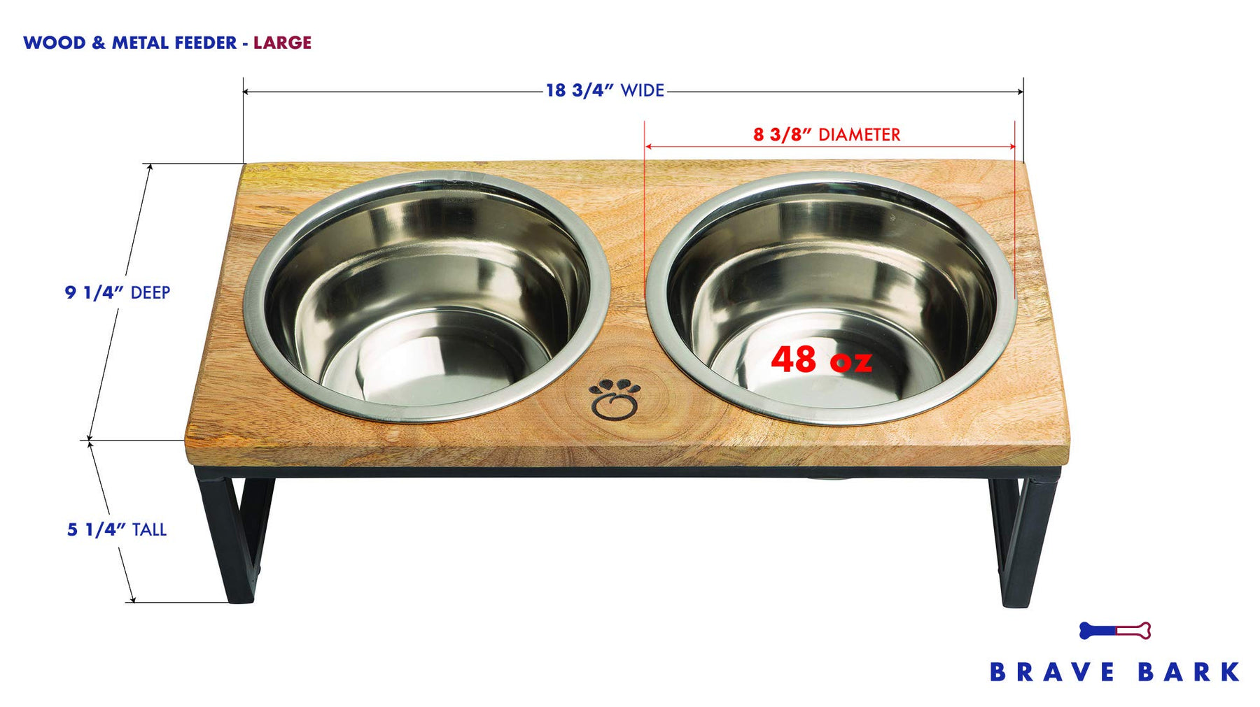 - Original Raised Bowls – Mango Wood Dog Bowl Stand - Elevated Pet Feeder with 2 Stainless Steel Bowls - Raised Food and Water Dish Set for Dogs and Cats, Available in 4 Sizes, Pet Dining Station, Large/48oz by GF Pet
