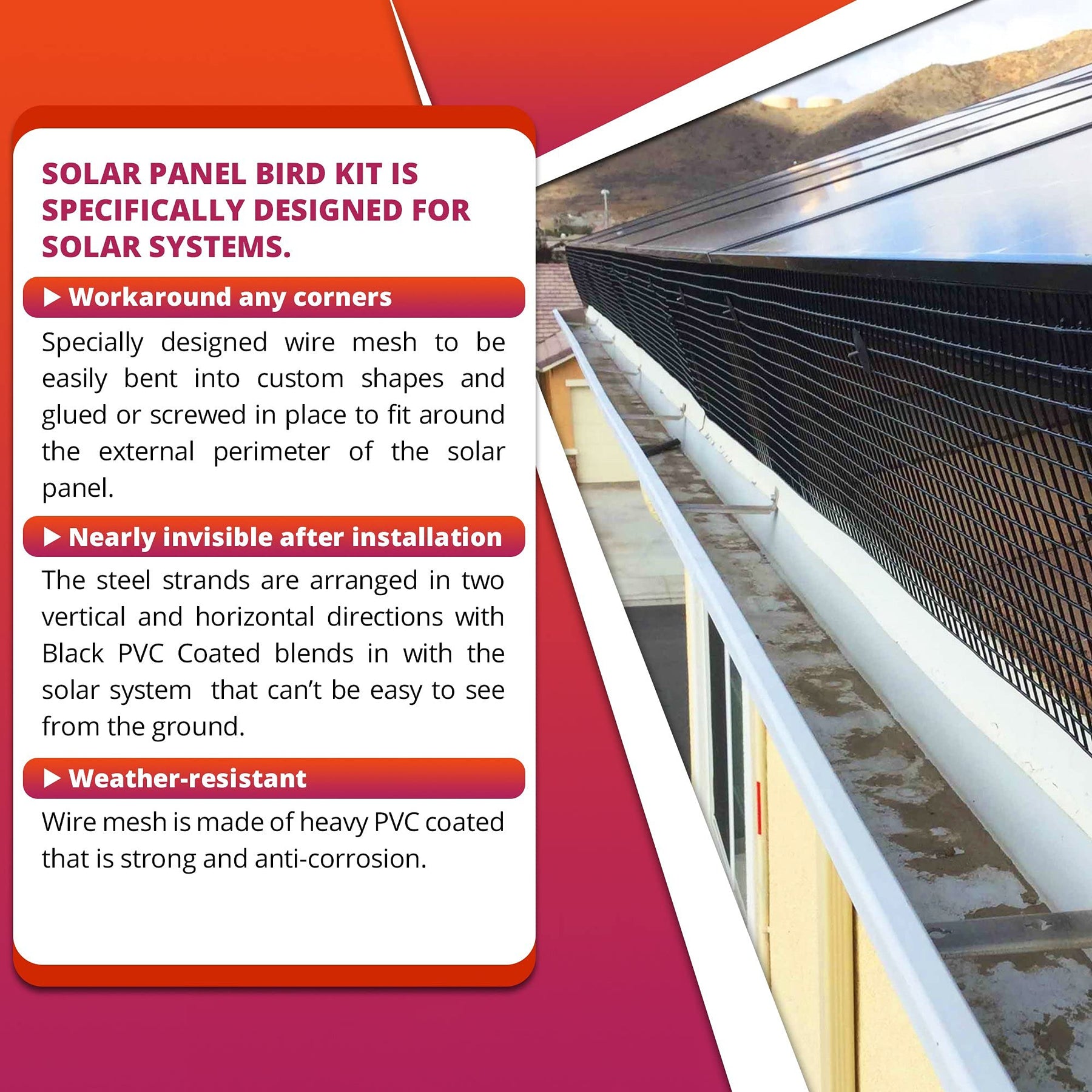 - MAXIMIZE YOUR SOLAR PANEL PERFORMANCE: Our 6x120FT solar mesh screen is designed to keep critters out, so your solar panels stay clean and efficient. With our durable and weather-resistant black PVC coated galvanized steel mesh, you can keep your panels safe and performing at their best for years to come. Trust MAPORCH to protect your solar investment, and enjoy the peace of mind that comes with knowing your panels are bird-proof and secure!
