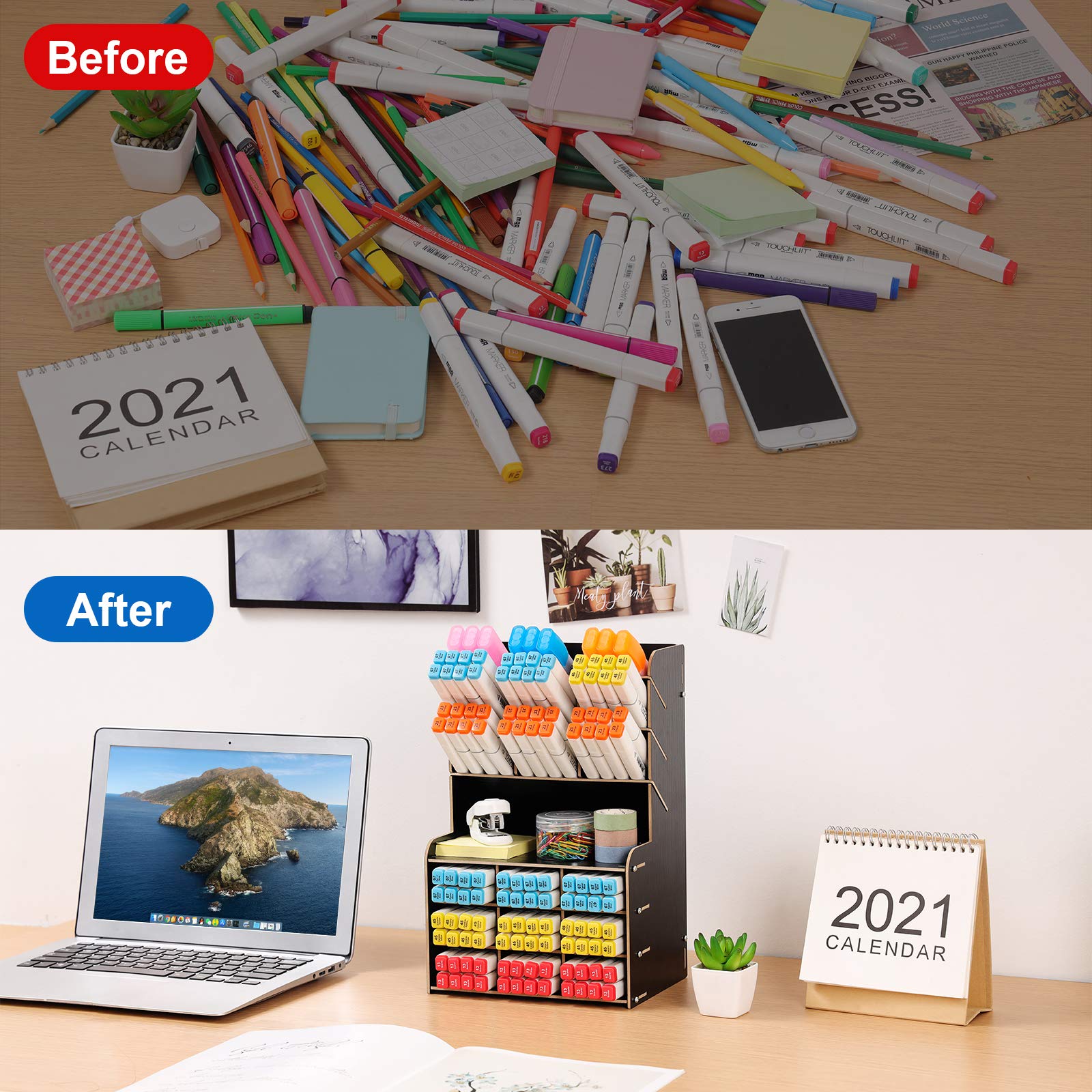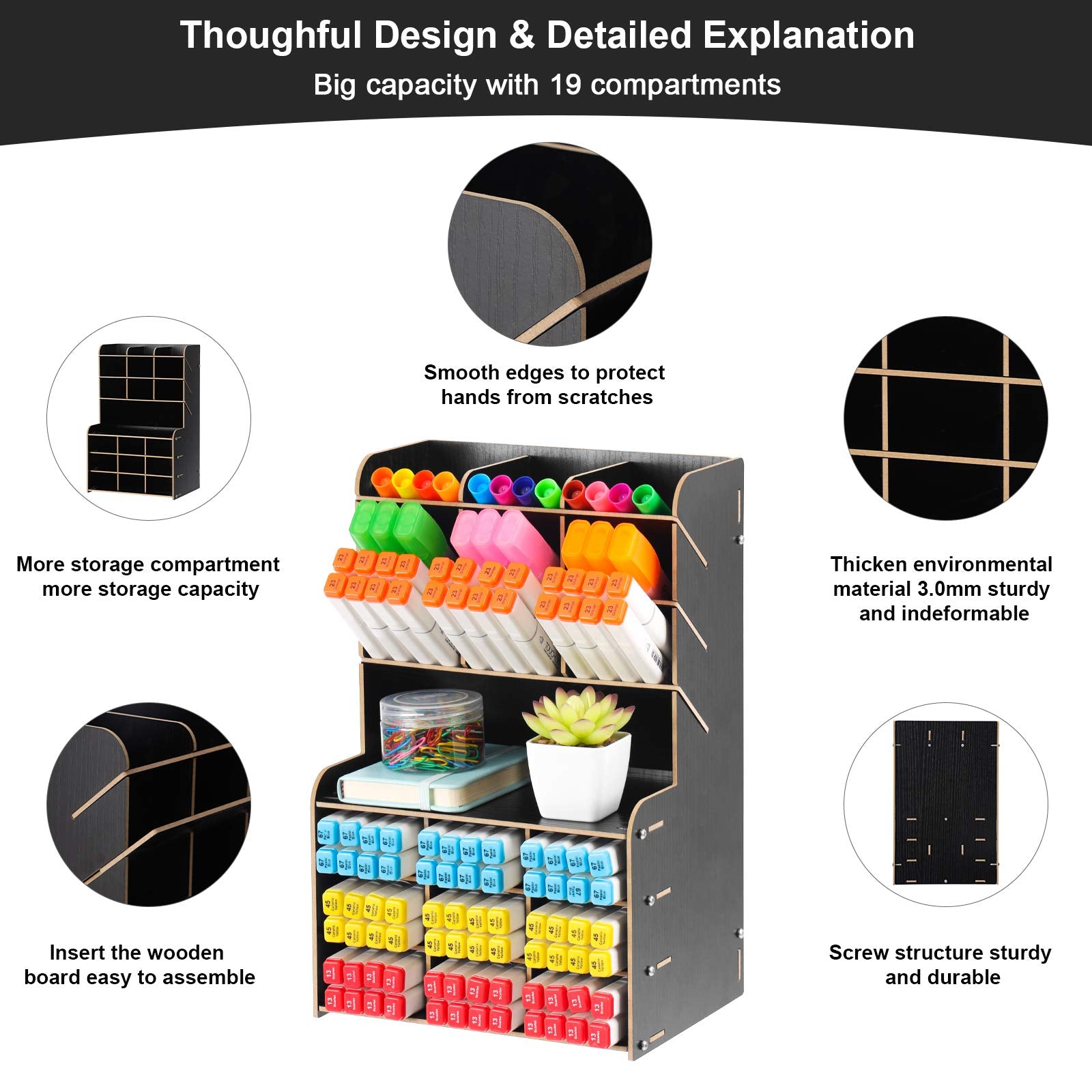 - Original Pencil Holders – Upgraded Wooden Pencil Holder, Pen Organizer for Desk, Easy Assembly, Art Supply Organizer, Desktop Stationary Organizer Caddy (Black) by Marbrasse