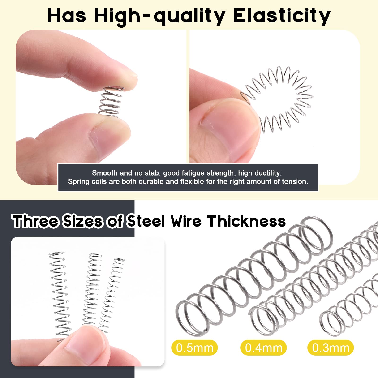 - Original Compression – 240 Pcs 15 Sizes Compression Springs Assortment Kit Mini Stainless Steel Springs for Repairs with Case, OD 4mm 5mm 6mm, 10-50mm Length, Wire Diameter 0.3mm, 0.4mm, 0.5mm by Mardatt
