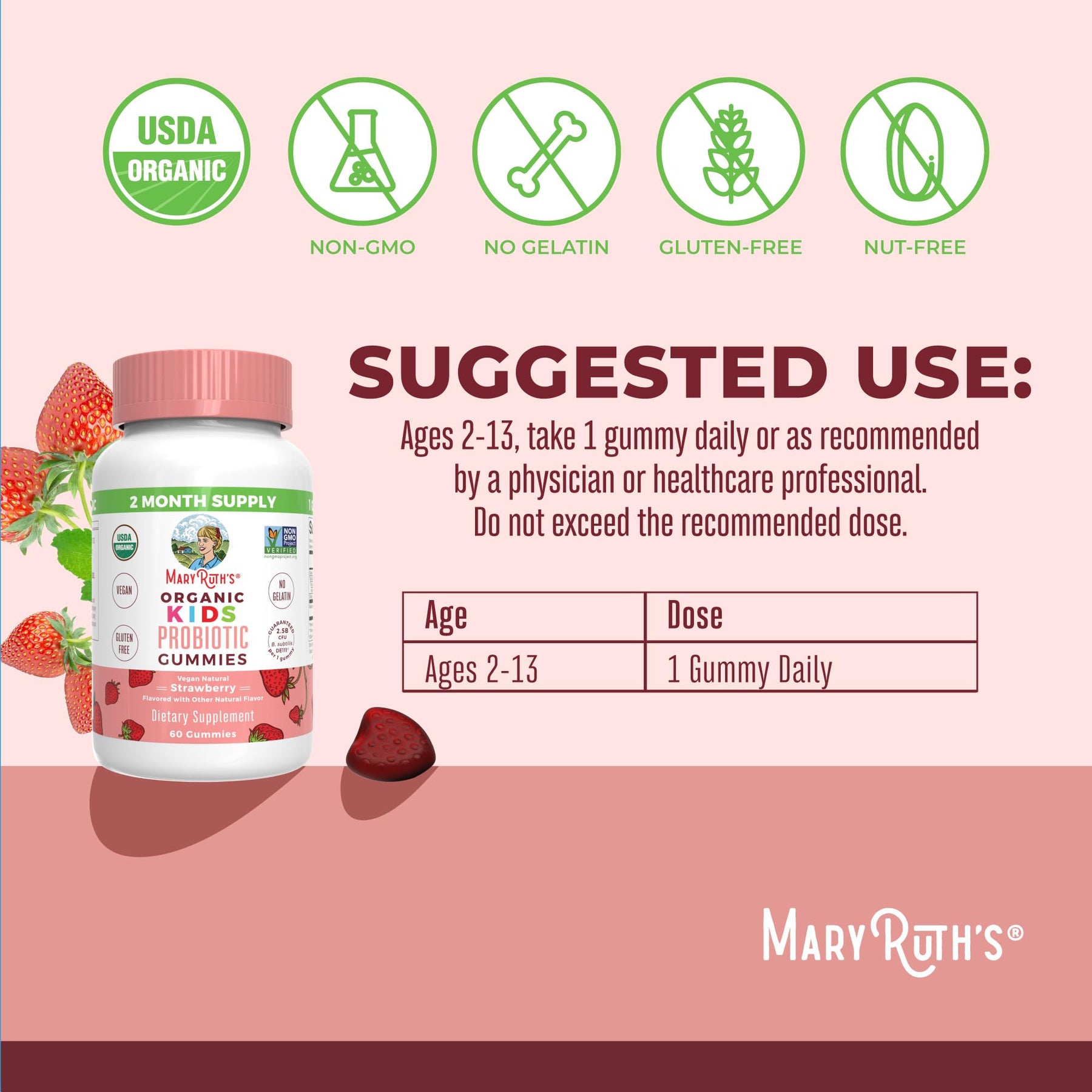 - Original Probiotics – Kids Probiotics for Digestive Health, USDA Organic Probiotic Gummies, Probiotics for Kids, Immune Support, Gut Health Supplement, Vegan, Non-GMO, Gluten Free, 60 Count by MaryRuth Organics