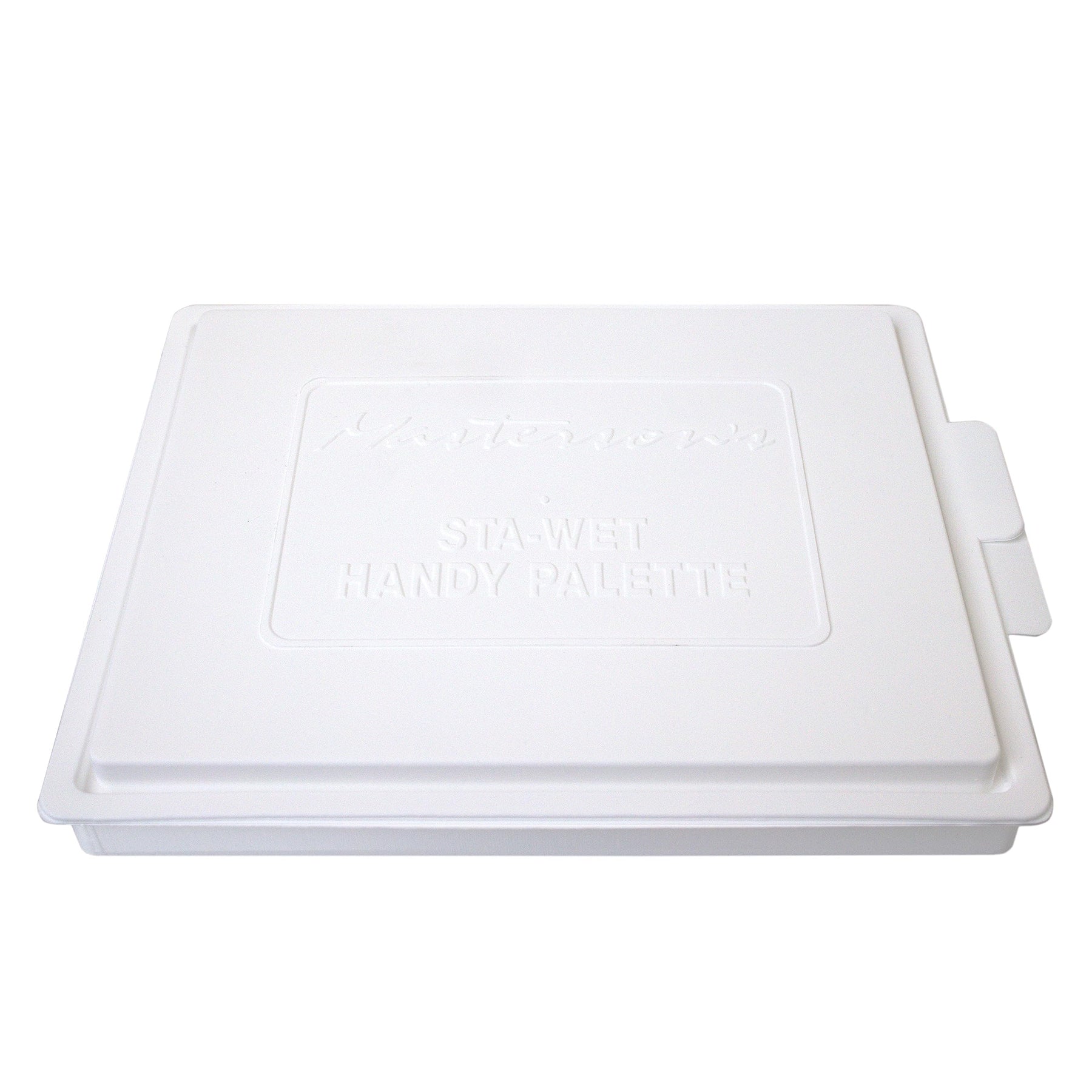- Masterson Sta-Wet Handy Palette – 8.5in x 7in x 1in. The first wet palette developed in 1981 and is still the number one choice for artists. Made in Pennsylvania, USA. No more wasted paint! When closed, the airtight container keeps paints workable for days, even weeks. A custom wet sponge and special permeable palette paper provides the paint with a constant source of moisture. Paints will slowly absorb moisture from the sponge through the paper. Great size for miniatures and advanced or beginner artists wanting to work with a smaller paint mixing area.