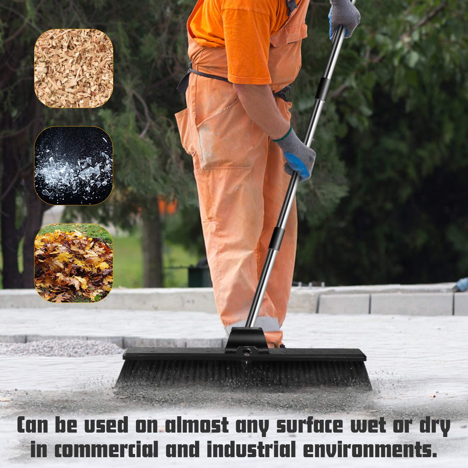 - Original Push Brooms – 24 Large Push Broom,Outdoor Brooms with 57.6 in Stainless Steel Long Handle for Yard Floor Cleaning,Multi-Surface Stiff Bristles Garage Heavy Duty Broom,Extra 12 Indoor/Outdoor Broom Head by Masthome