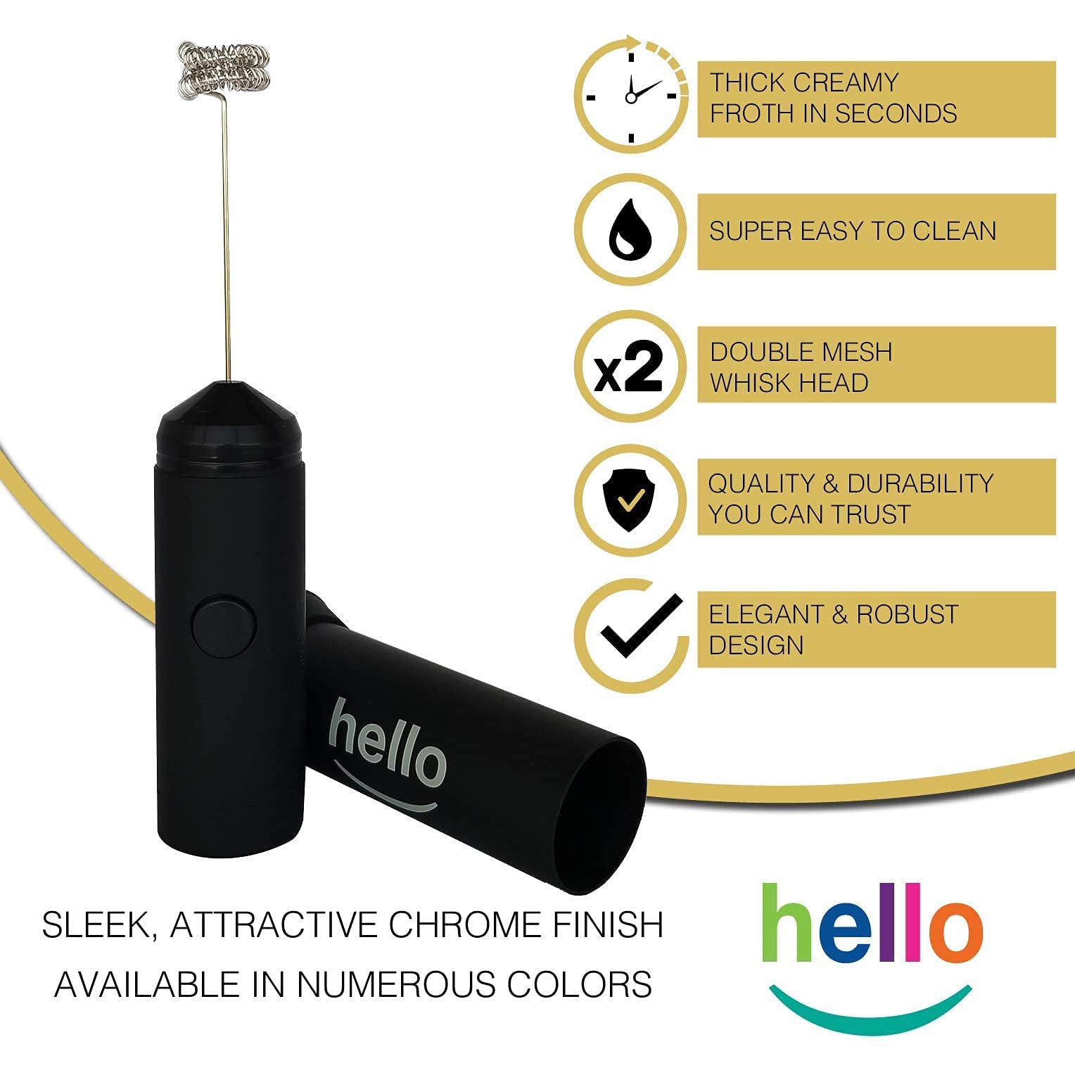 - Original Milk Frothers – MatchaDNA Hello Handheld Battery Operated Milk Frother with Double Whisk Head for Thick Frothed Milk, Black by MATCHA DNA