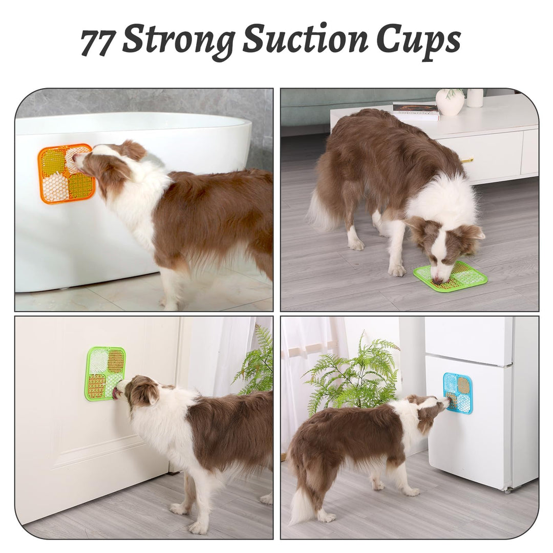 - Reduce Anxiety & Destructive Behavior: These lick mats for dogs large and dog lick mat with suction cups help calm and soothe your pets by helping release endorphins through the promotion of licking. Our cat lick mat and dog licking mat is a safe alternative for your dog to lick which is great for stressful times such as grooming, bath time, nail clipping, injury recovery, and fireworks