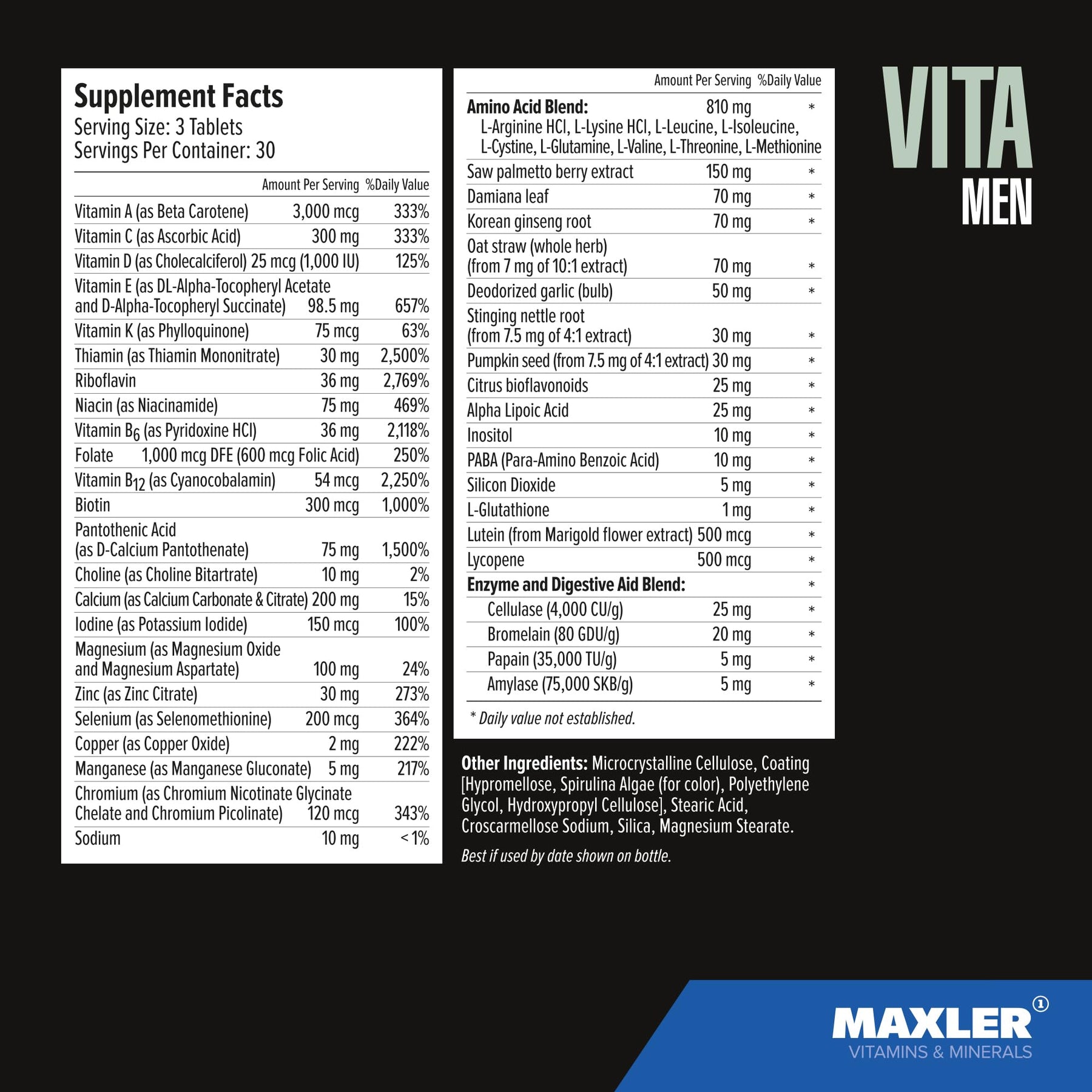 - Original Multivitamins – VitaMen Multivitamin for Men - High Potency Men's Multivitamins for Sports & Performance - Men's Vitamins & Minerals Blend, Amino Acids Blend, Enzyme Blend - 90 Tablets by Maxler