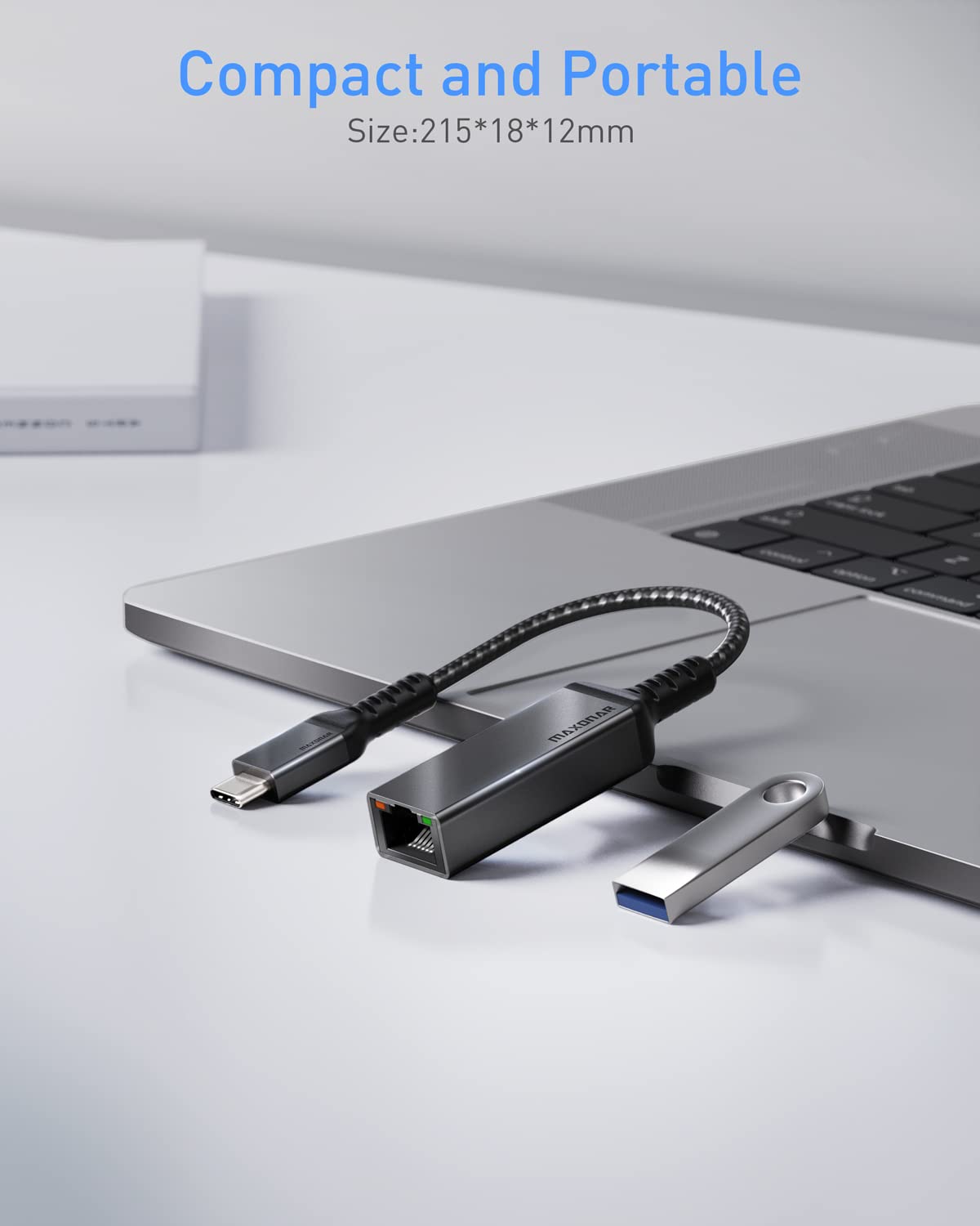 - [ Durable and Portable Design ]: Maxonar USB C to RJ45 Adapter adopt a aluminum shell design, which prevents from overheating. You could take it everywhere because of the space-saving and portable design, perfect for business trip, traveling, entertainment and more.