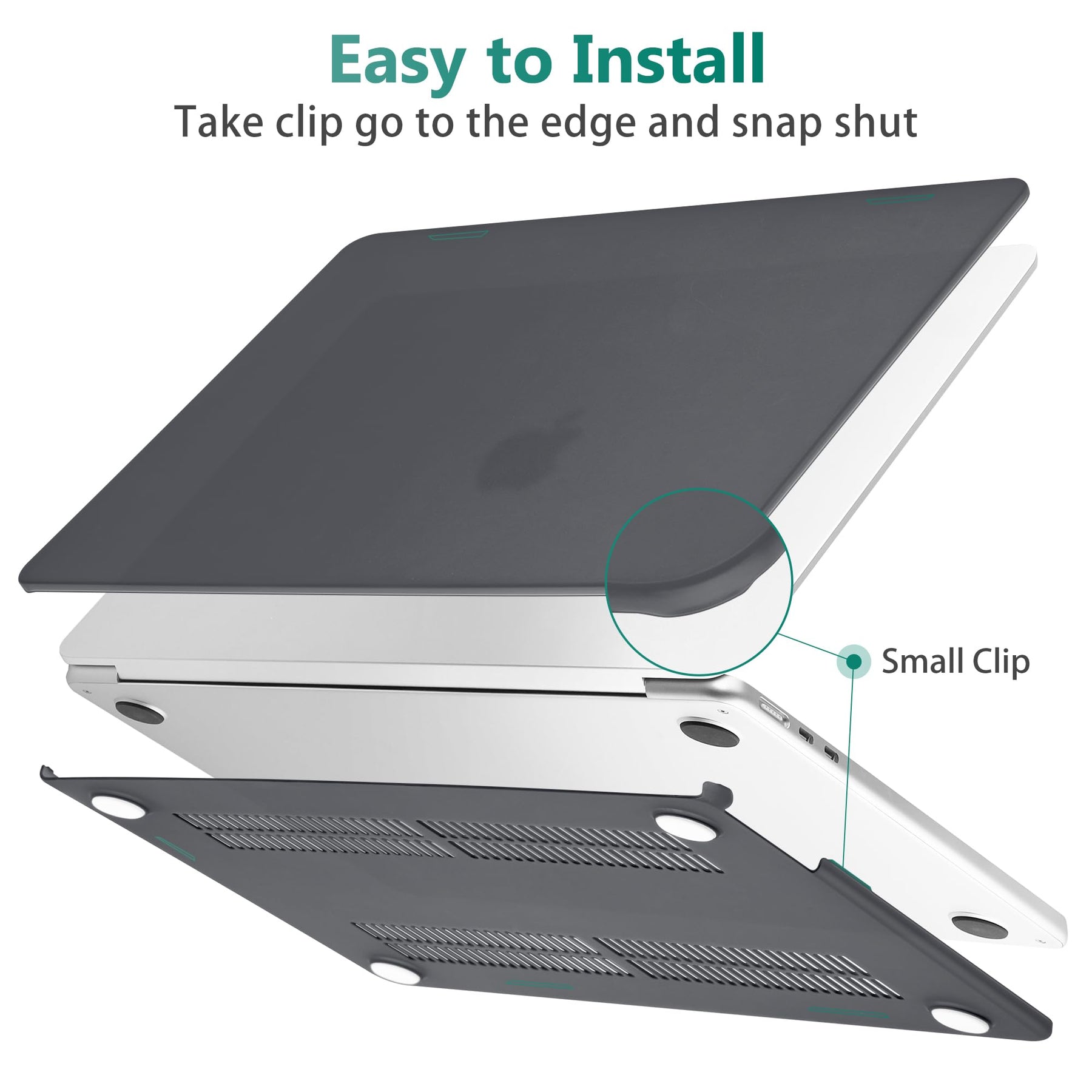 - Snap on design, Easy to install and disassemble and easy on and off,Fully vented for heat disbursement,Fully access to all ports and features, plug your charger, cable or headset without removing the case. Package Including keyboard cover, Dust plug and screen protector to protect your keyboard & screen against spills.
