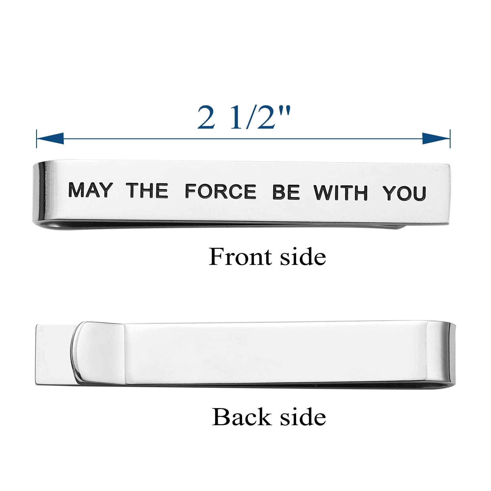 - This tie clips are great wedding gifts for the Star Wars fan. The May The Force Be with You is engraved with the text as pictured “May The Force Be with You” .